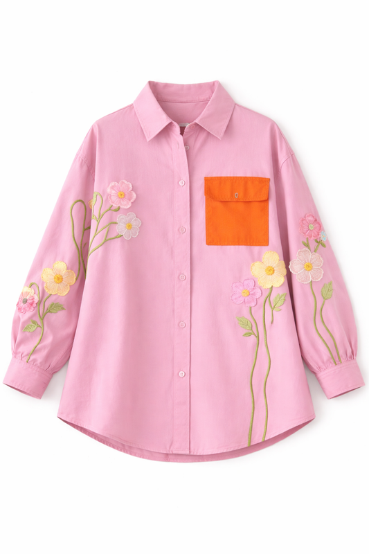 Green and Pink Hand Embroidered Co-ord Set - NZC02