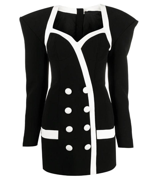 Black Chic Short Dress with Gold Buttons