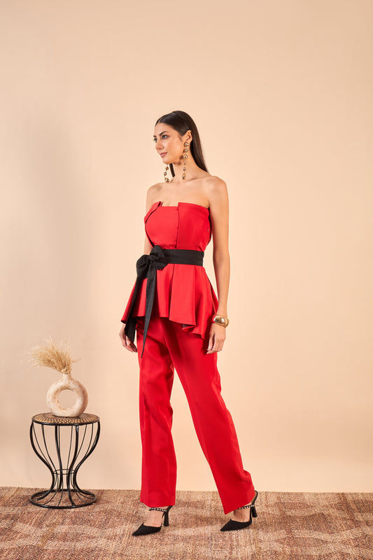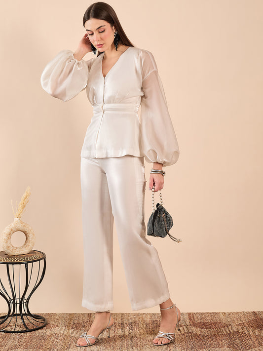 Full-Sleeve Peplum Top and Straight-Fit Pants Coord Set