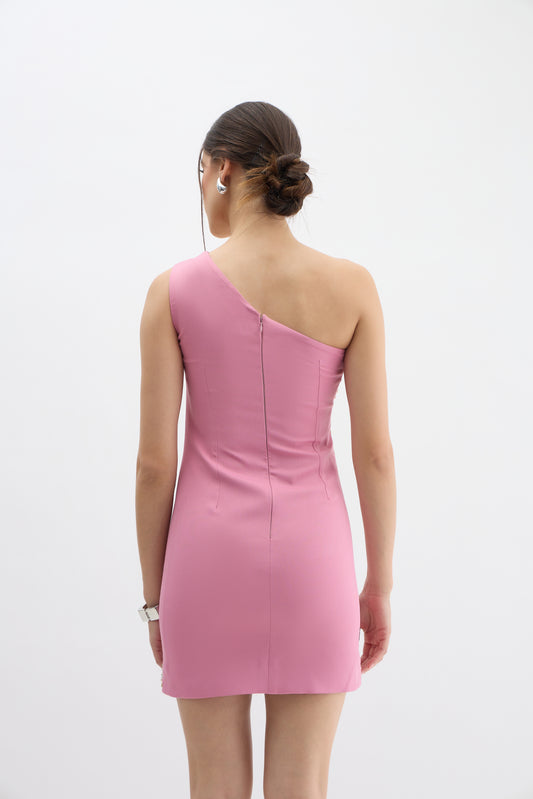Sunset Bloom One-Shoulder Embellished Mini Dress