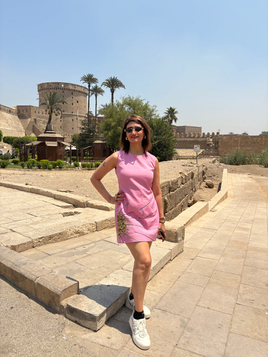 Pink Dress with Yellow and Black 3D Floral Embellishments
