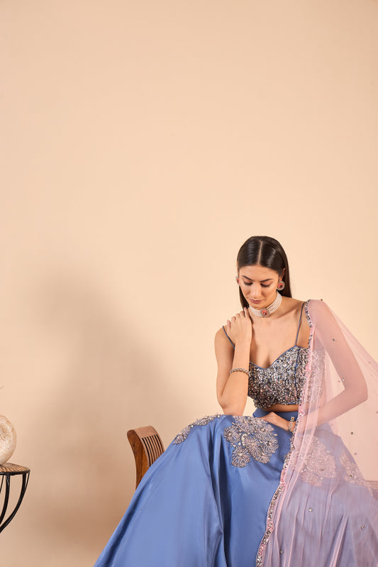 Satin Lehenga with Extensive Hand Embroidery
