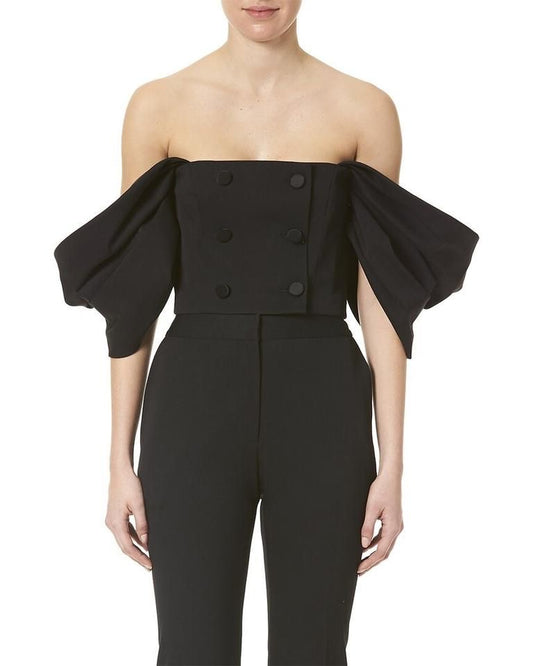 Velvet Black Deep Neck Full-Sleeve Top with Satin Details