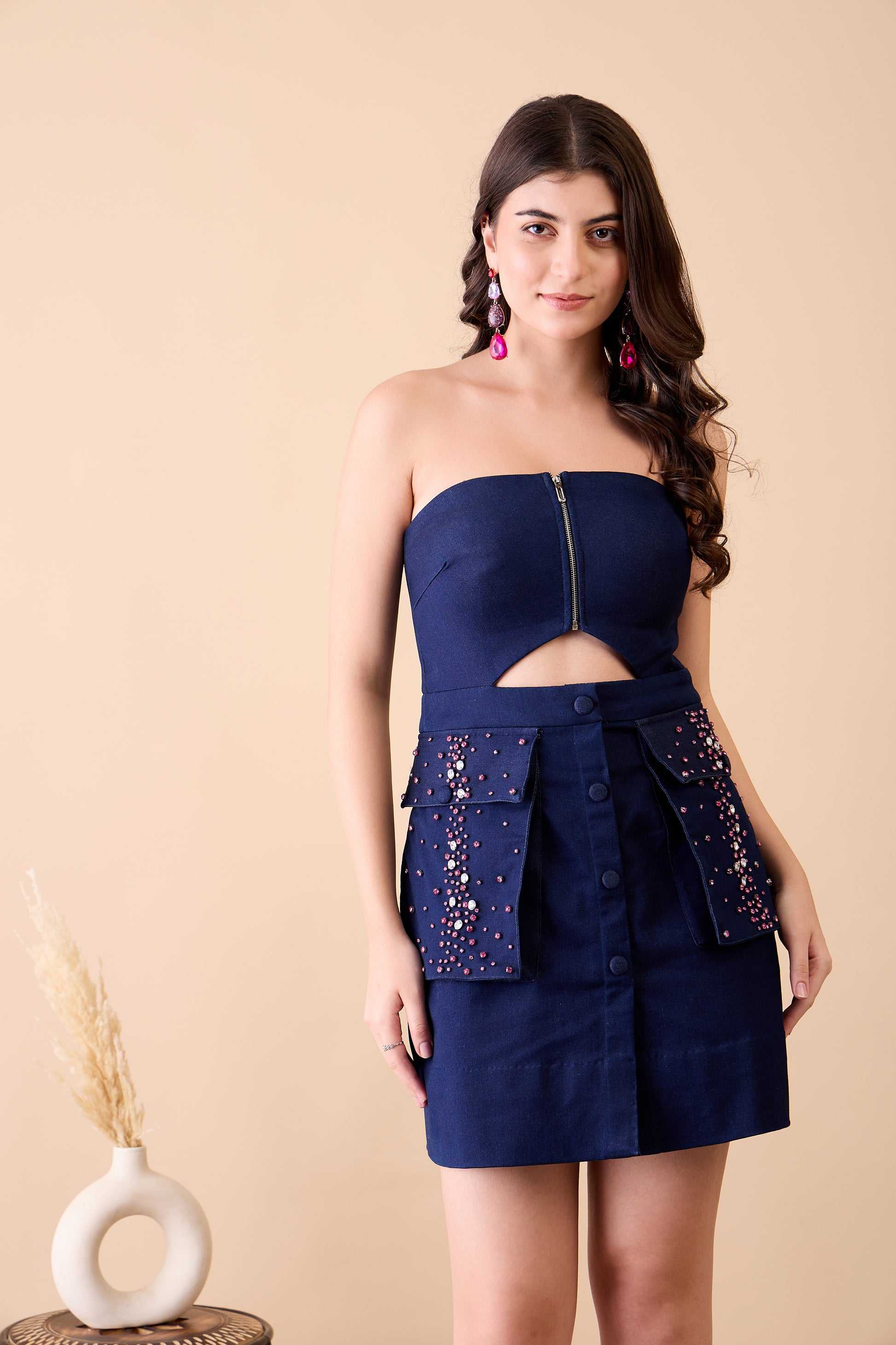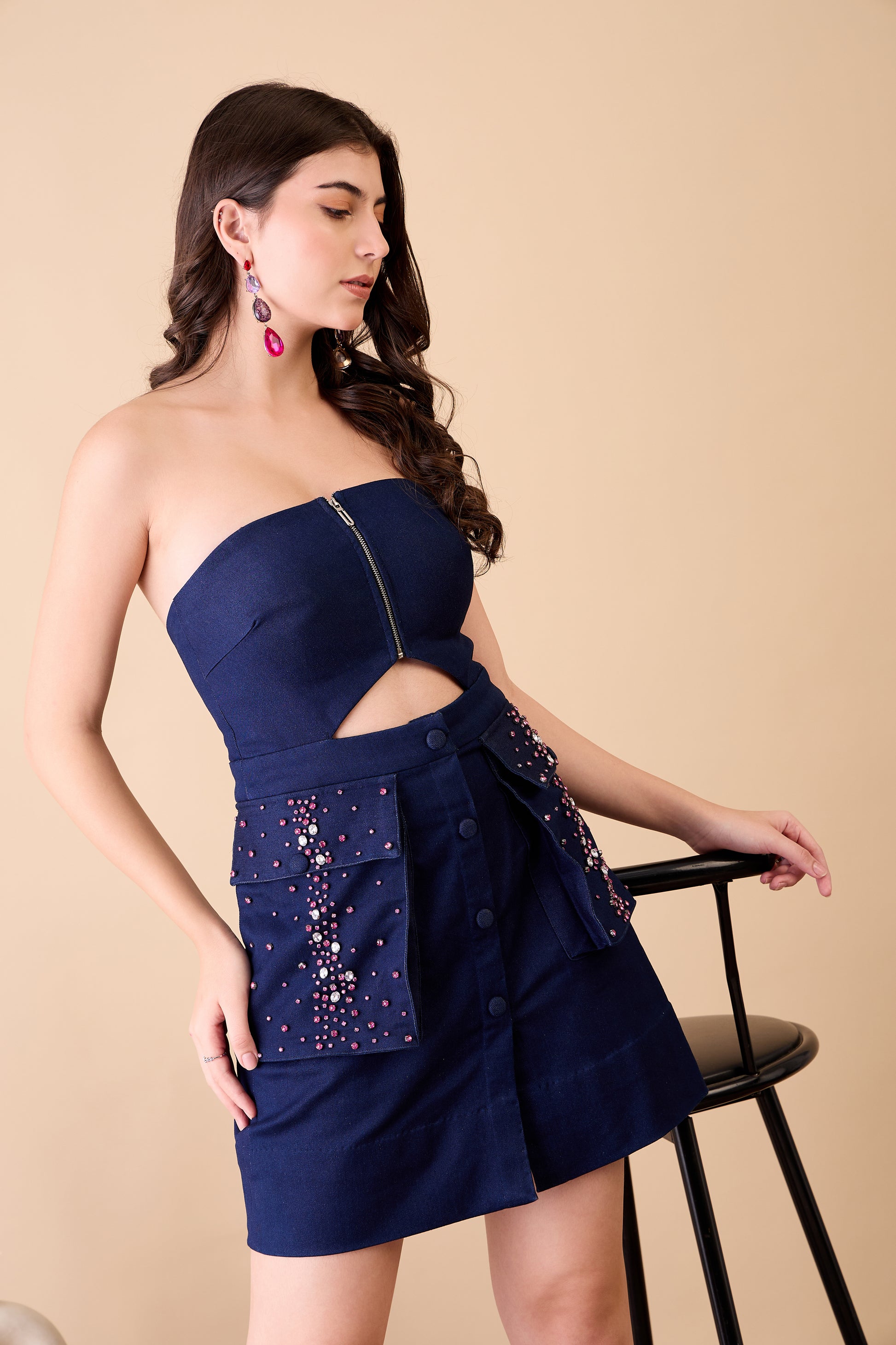 Discover the epitome of timeless elegance with our Sweetheart Neckline Dress from Nazaqatt. This captivating piece features a flattering sweetheart neckline, accentuated by a sleek zip closure at the bust for a modern touch. The waist cutout adds a touch of allure, creating a chic and feminine silhouette. The skirt is adorned with embellished big pockets and stylish buttons, blending functionality with high-fashion flair. Perfect for any occasion, this dress offers both comfort and sophistication, making it a must-have addition to your wardrobe. Elevate your style with Nazaqatt's signature design.
