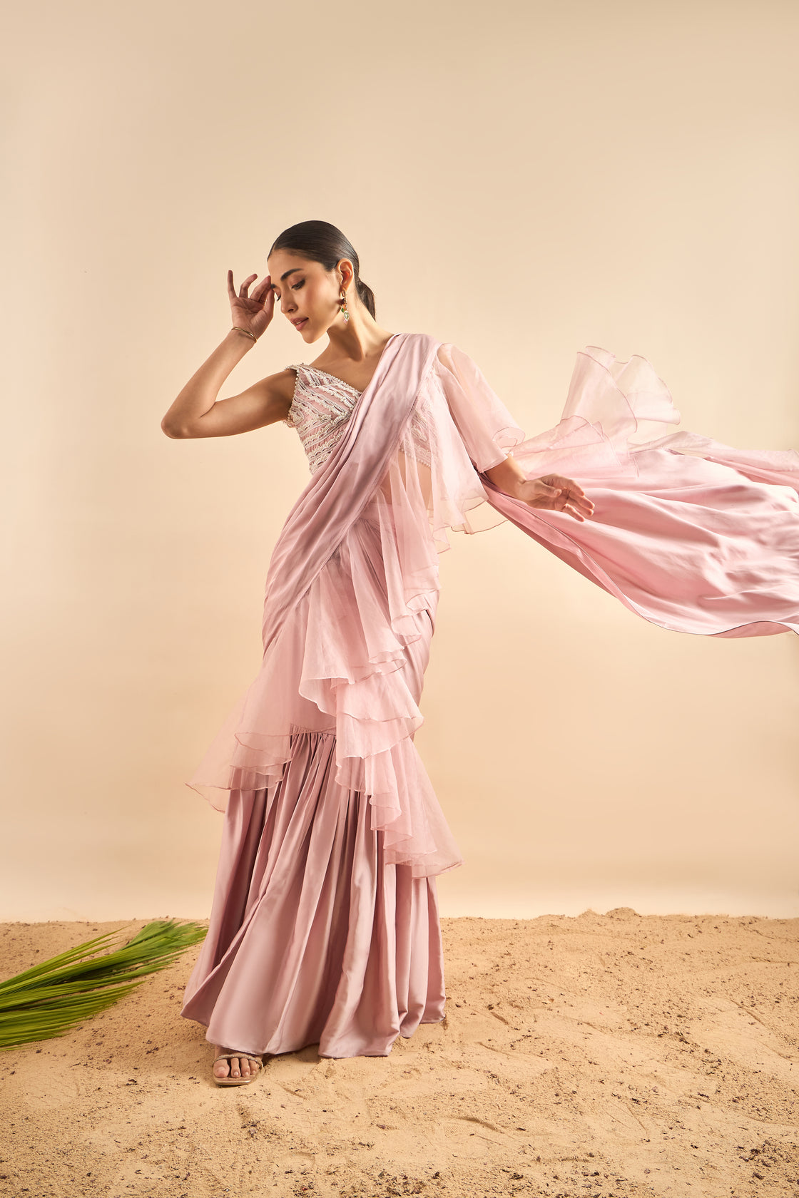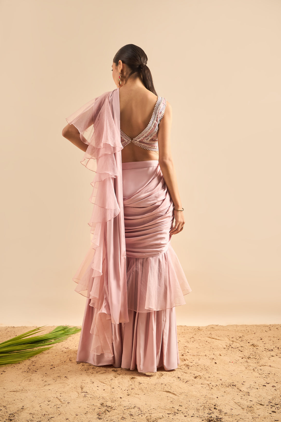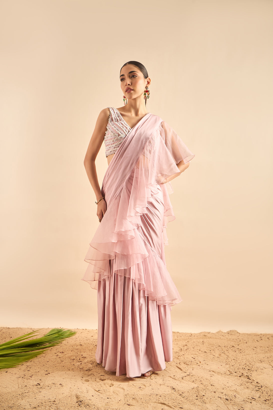 Exquisite Drape Saree with Ruffles and Embellished Bustier