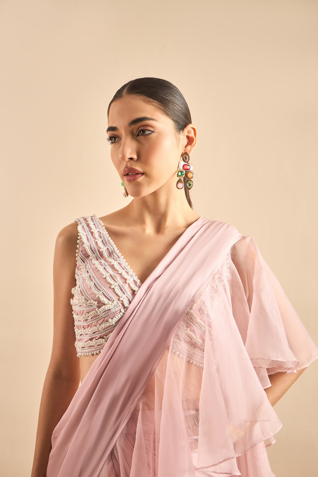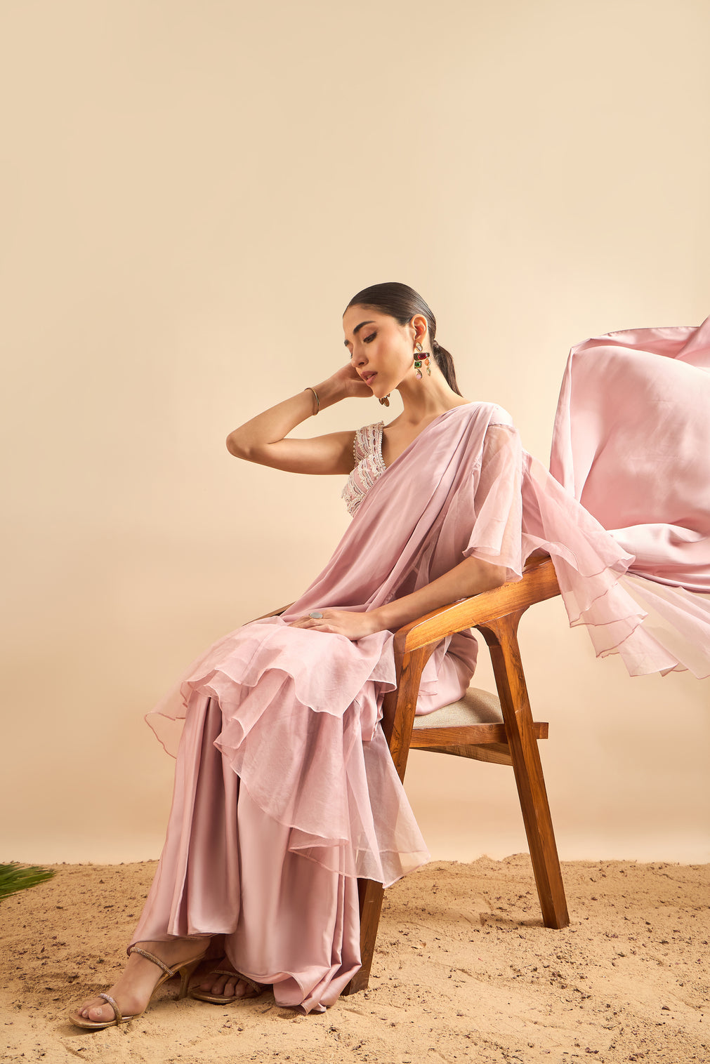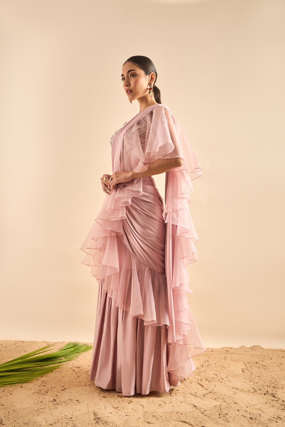 Exquisite Drape Saree with Ruffles and Embellished Bustier
