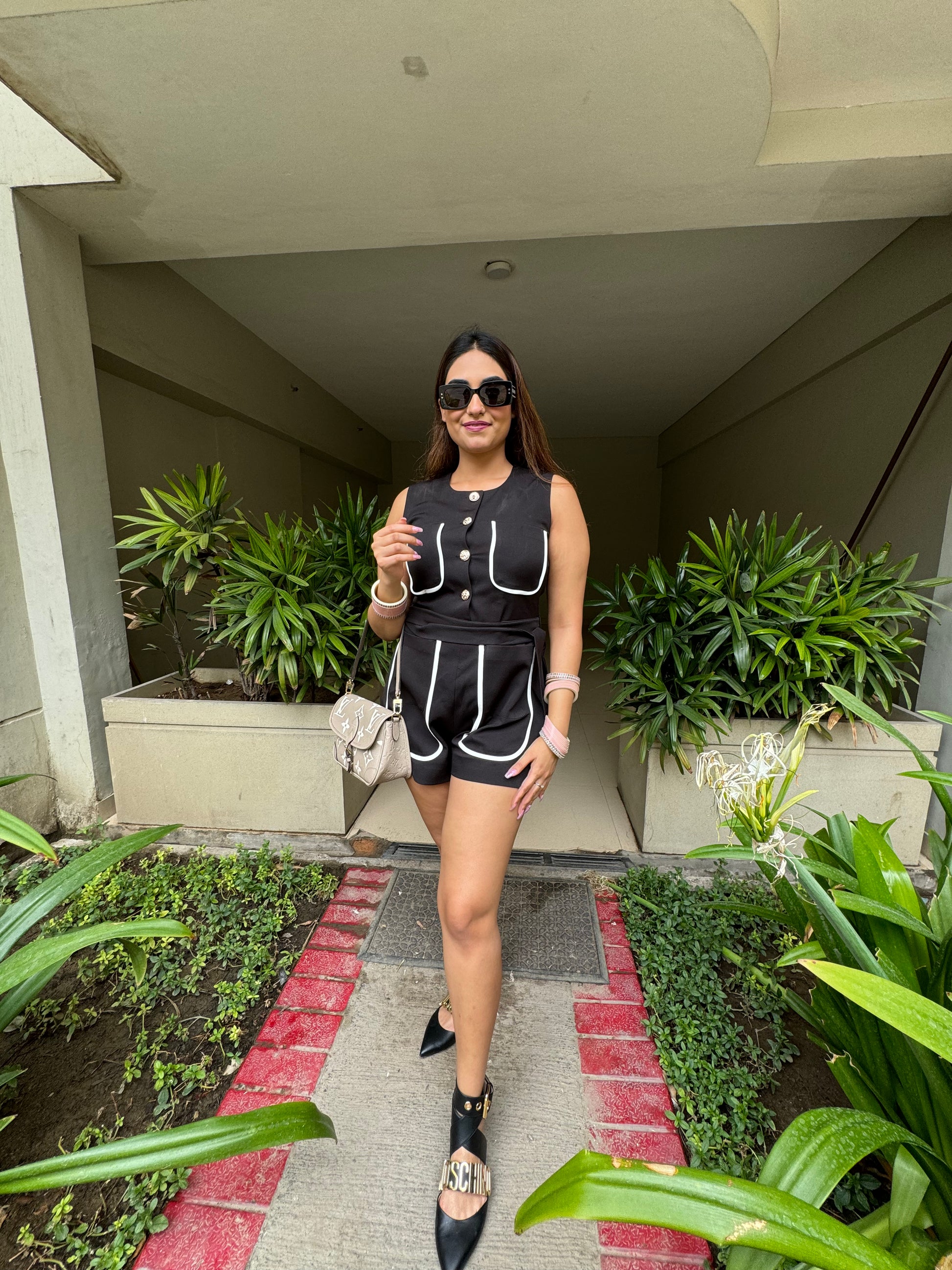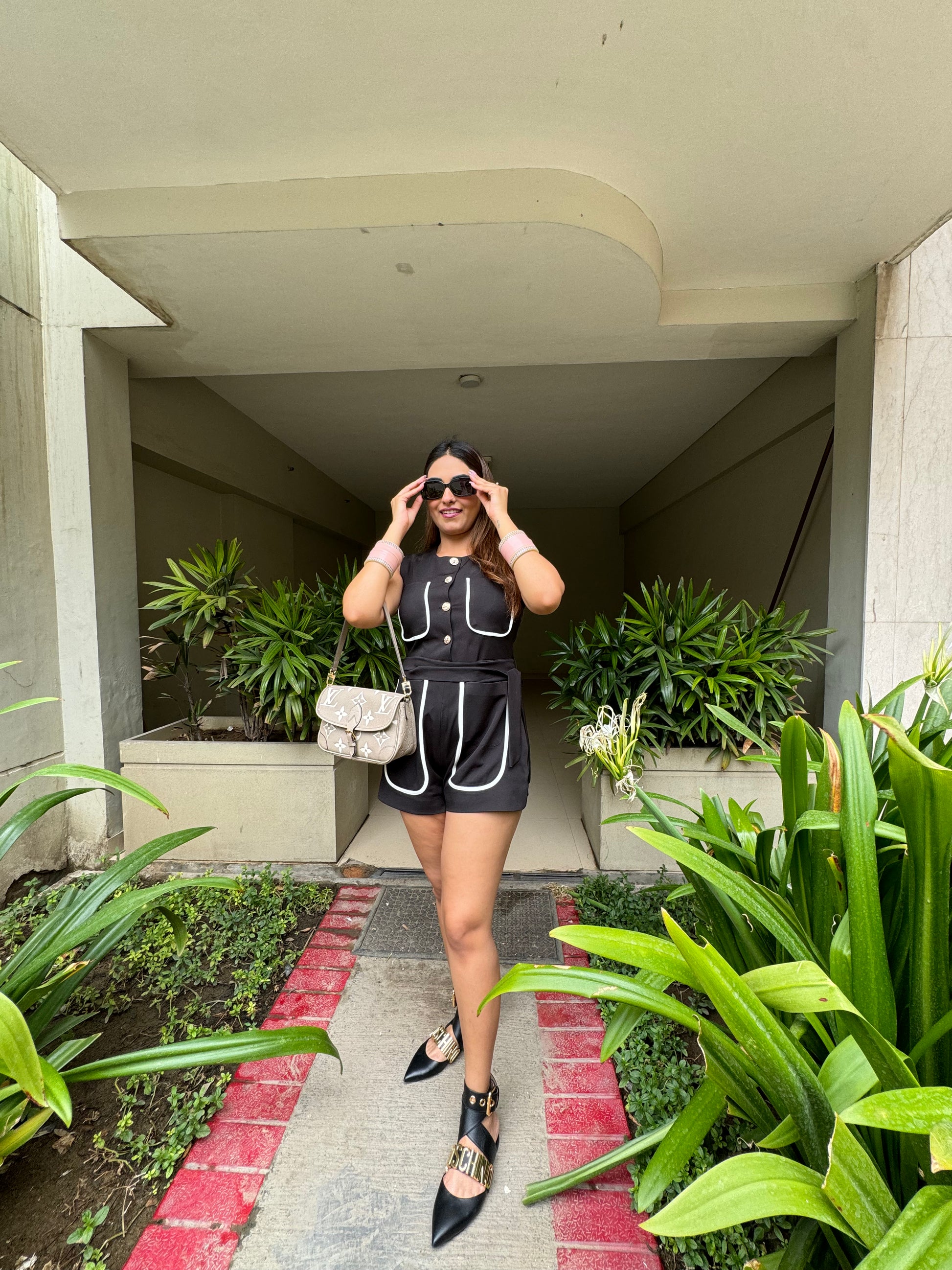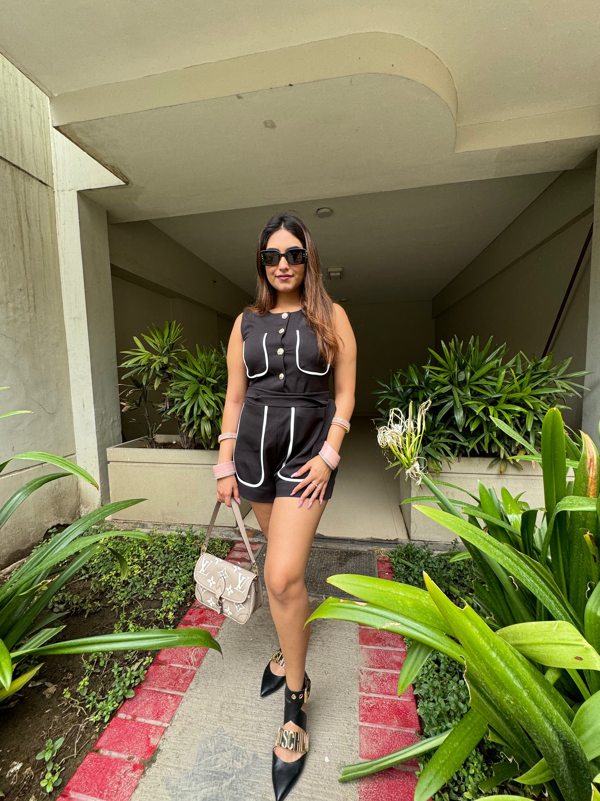 Step out in style with Nazaqatt's Black Playsuit, a chic and versatile piece perfect for any occasion. This trendy playsuit features eye-catching white pocket details that add a striking contrast, elevating the overall design. The tailored shorts offer a flattering fit, making this outfit ideal for casual outings, weekend getaways, or summer parties. Crafted with attention to detail and designed for comfort, this playsuit showcases Nazaqatt's dedication to contemporary fashion and quality craftsmanship.
