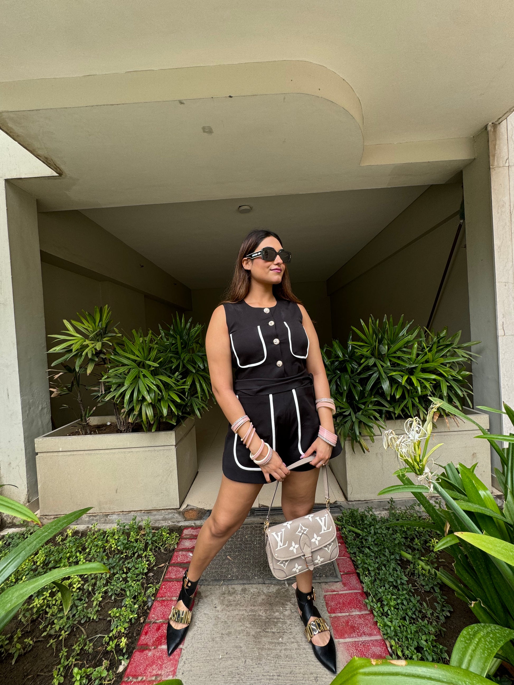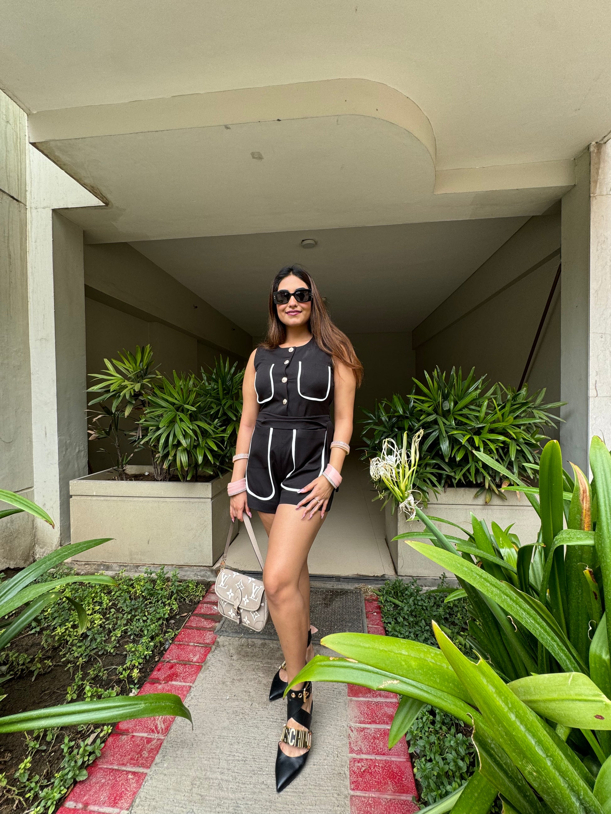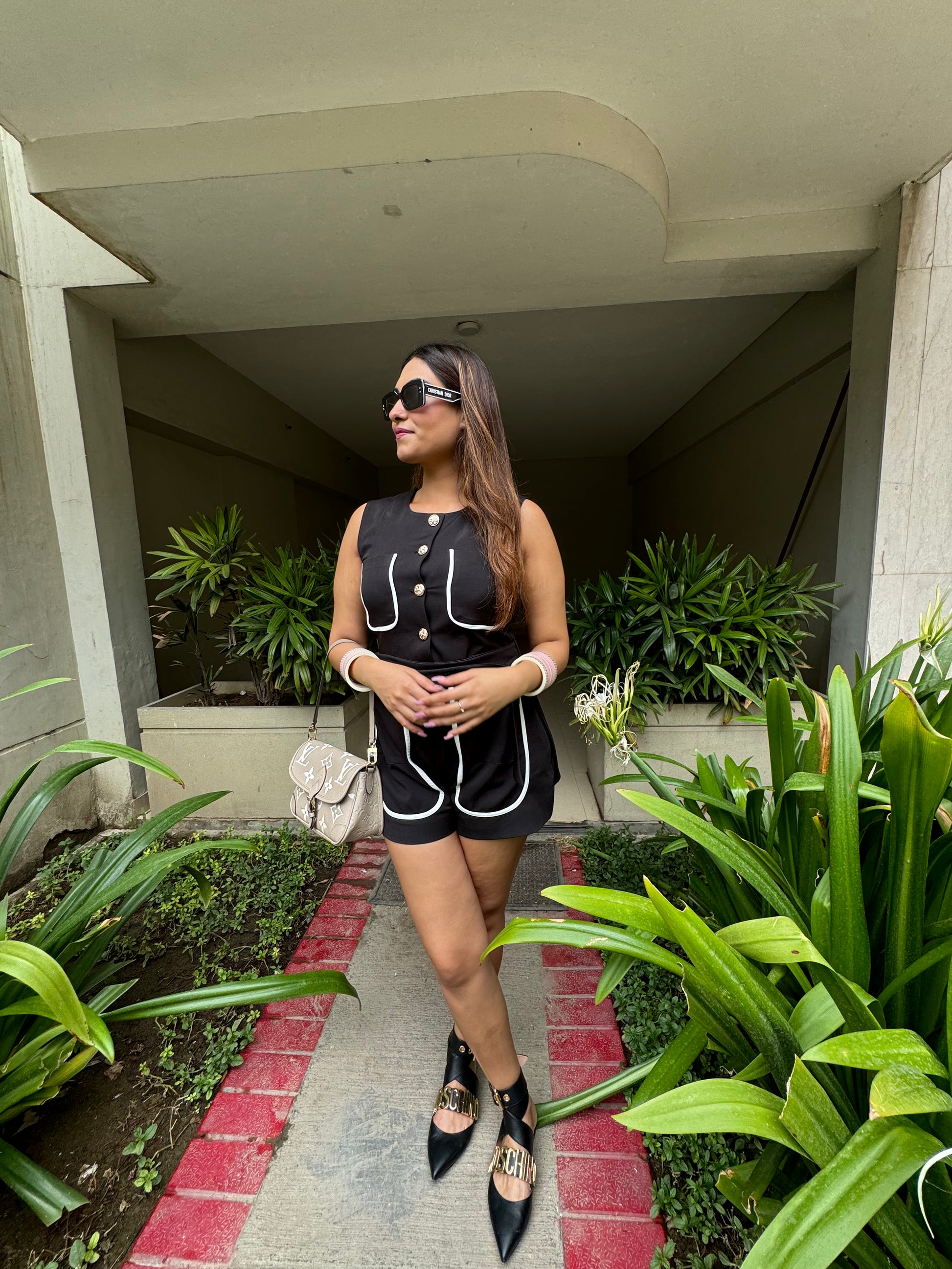 Step out in style with Nazaqatt's Black Playsuit, a chic and versatile piece perfect for any occasion. This trendy playsuit features eye-catching white pocket details that add a striking contrast, elevating the overall design. The tailored shorts offer a flattering fit, making this outfit ideal for casual outings, weekend getaways, or summer parties. Crafted with attention to detail and designed for comfort, this playsuit showcases Nazaqatt's dedication to contemporary fashion and quality craftsmanship.