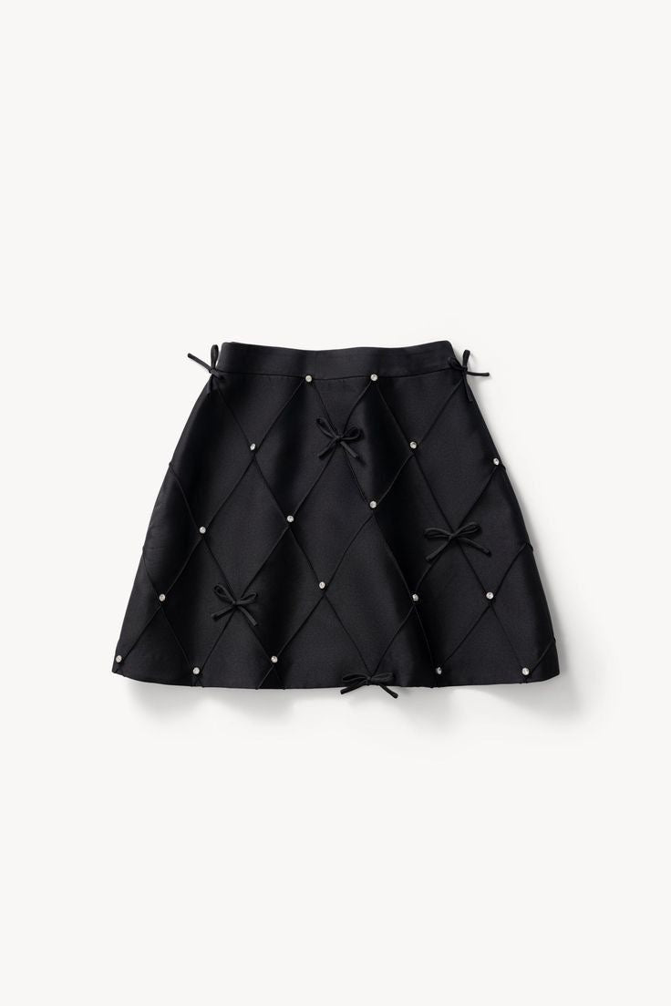 Asymmetrical Mini Skirt with Stonework and Bow Detailing