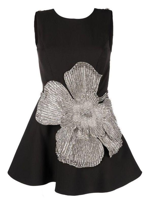 Black Dress with Stonework of a Big Flower