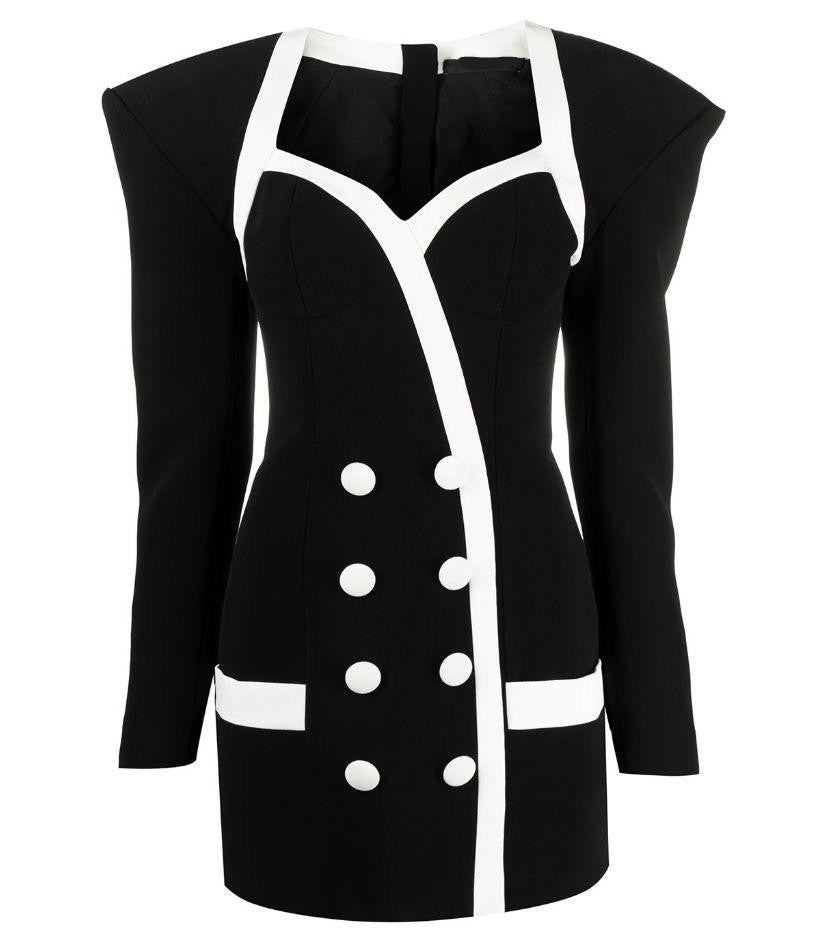 - White Buttons and Pockets: Bold white accents that create a stylish contrast against the black fabric, adding a touch of modernity.