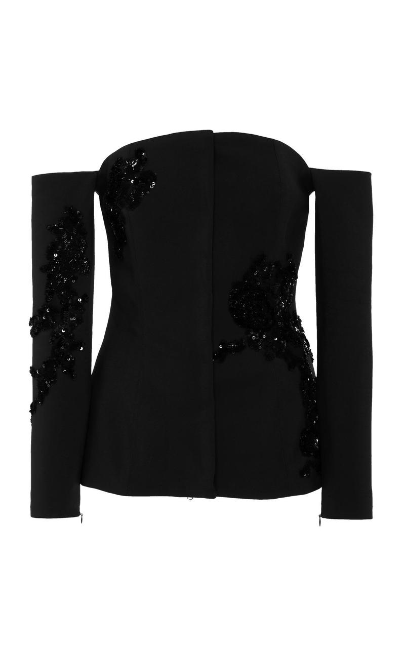 Black Full-Sleeve Off-Shoulder Top with Stonework Detailing