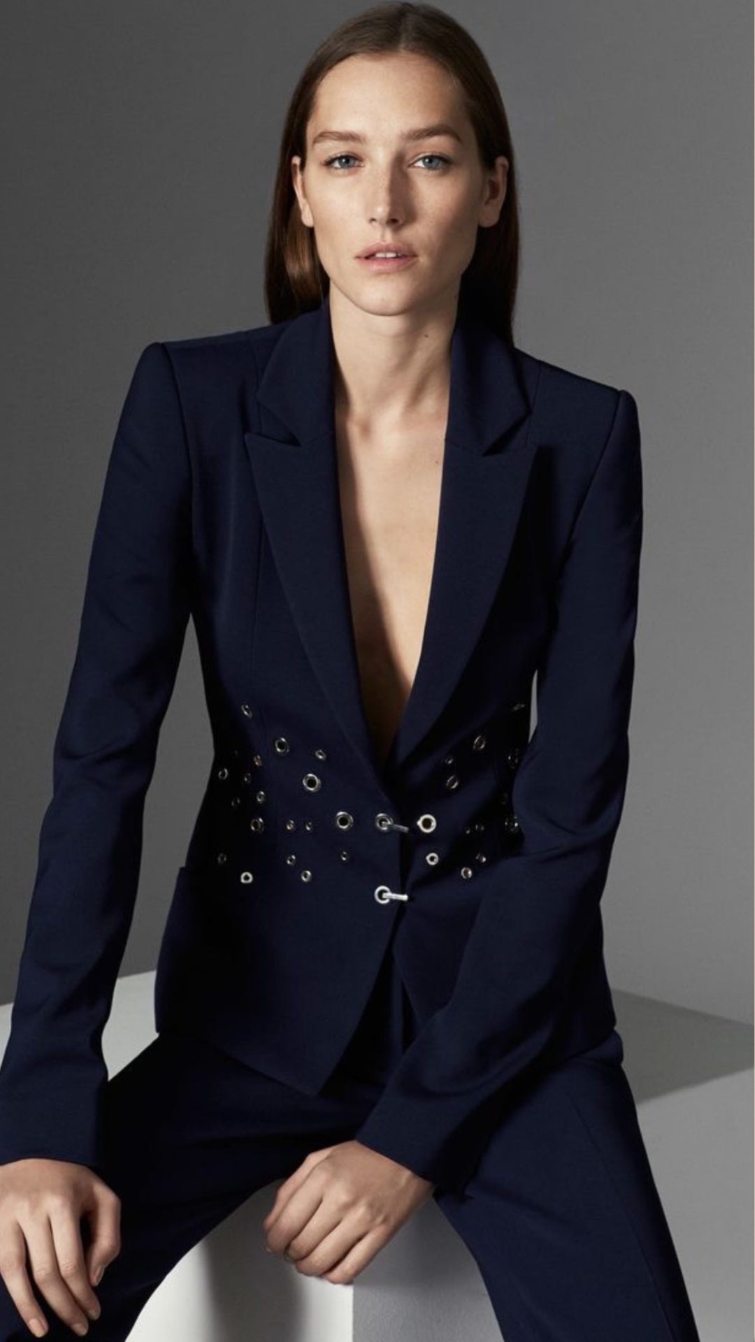 - Tailored Blue Blazer: Features a sharp, structured fit with eye-catching cut-out details for a modern edge.