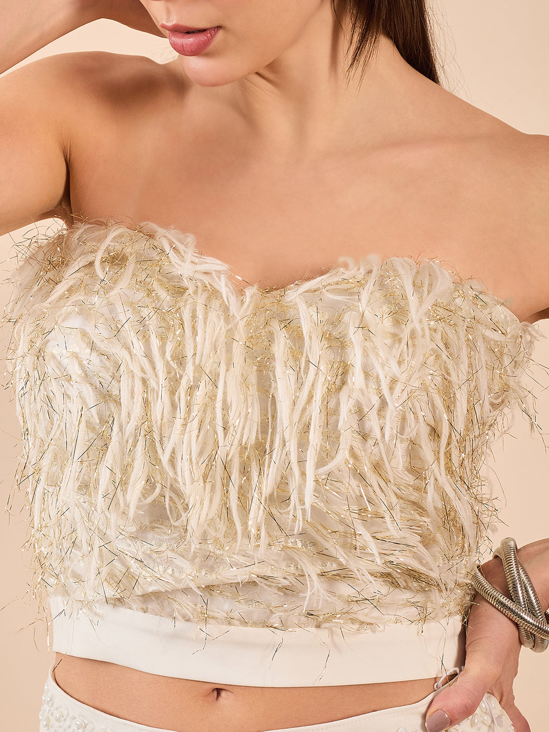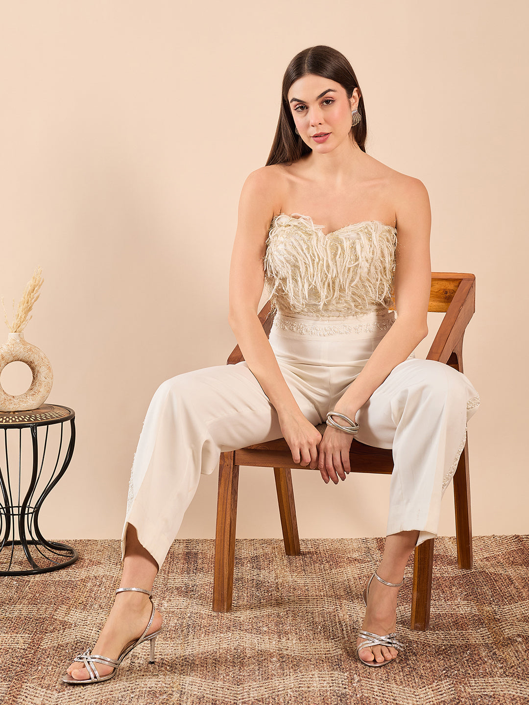 Fringed Corset Top with Classic Straight Pants and Pearl Waist Detail | Nazaqatt