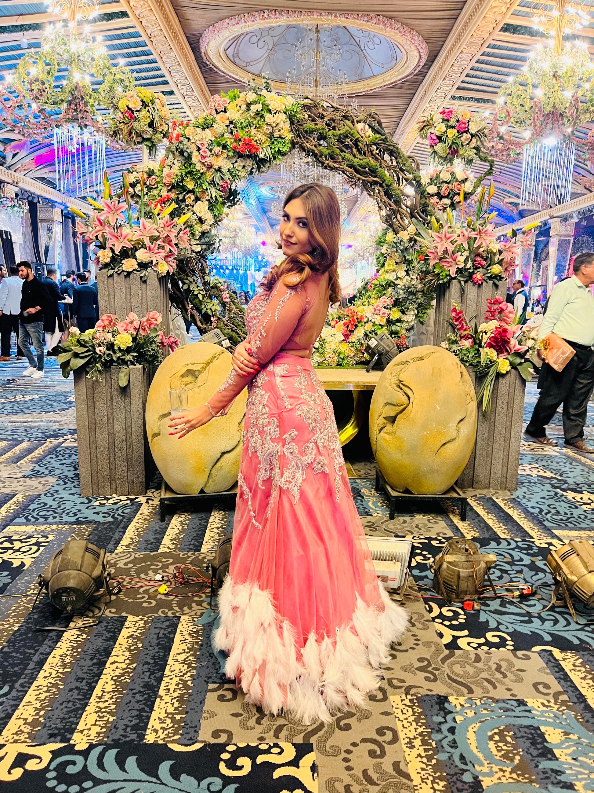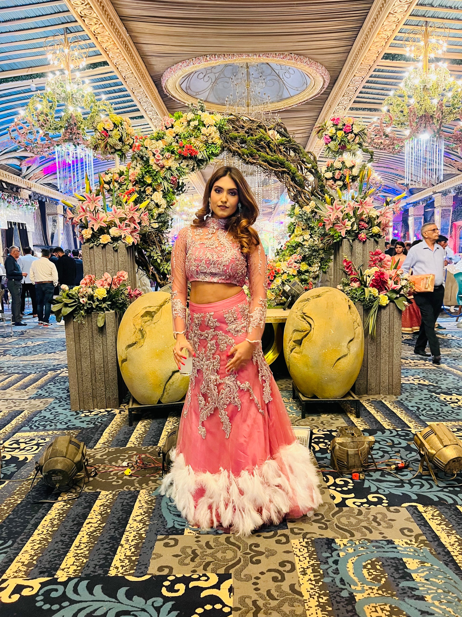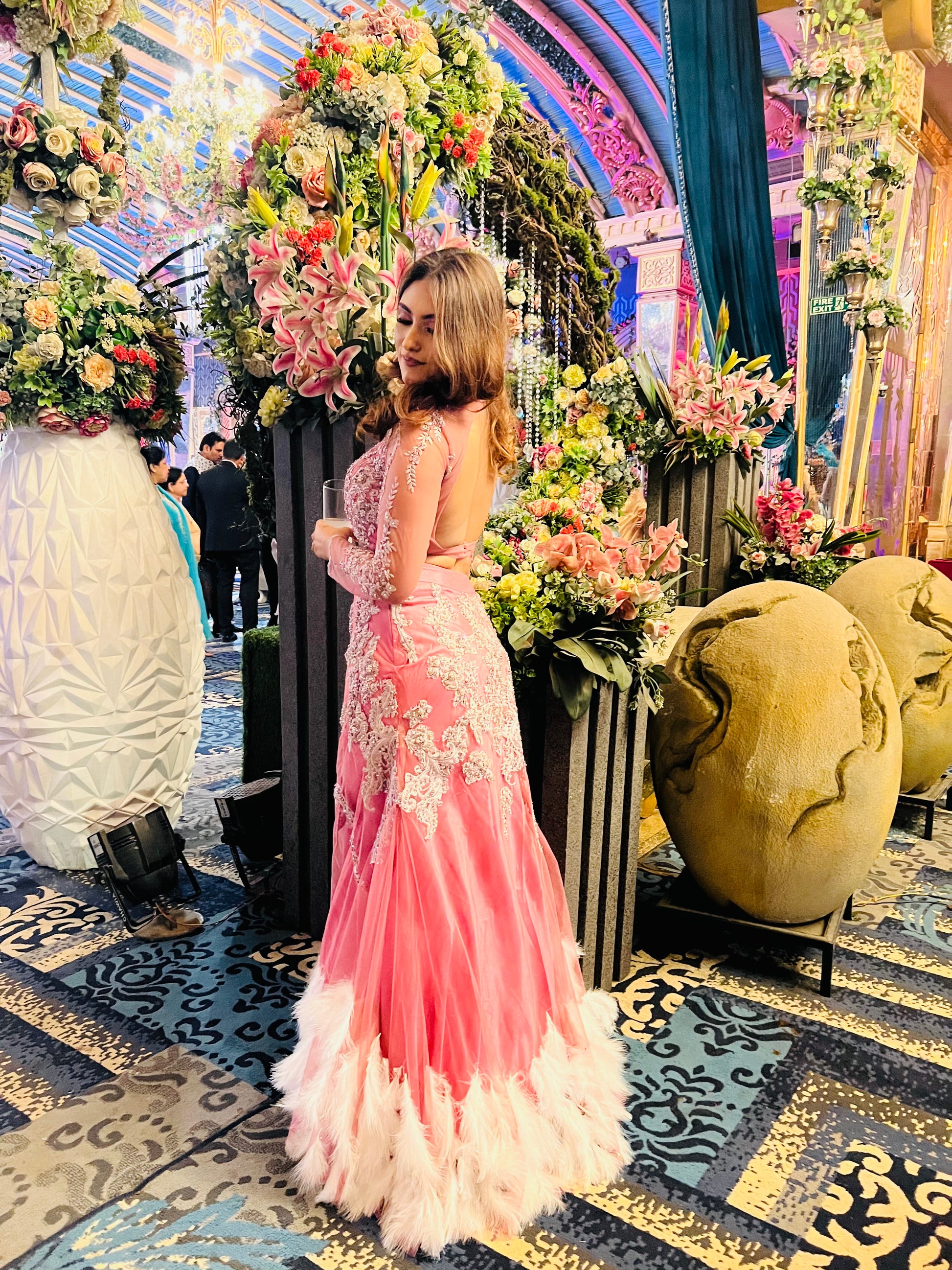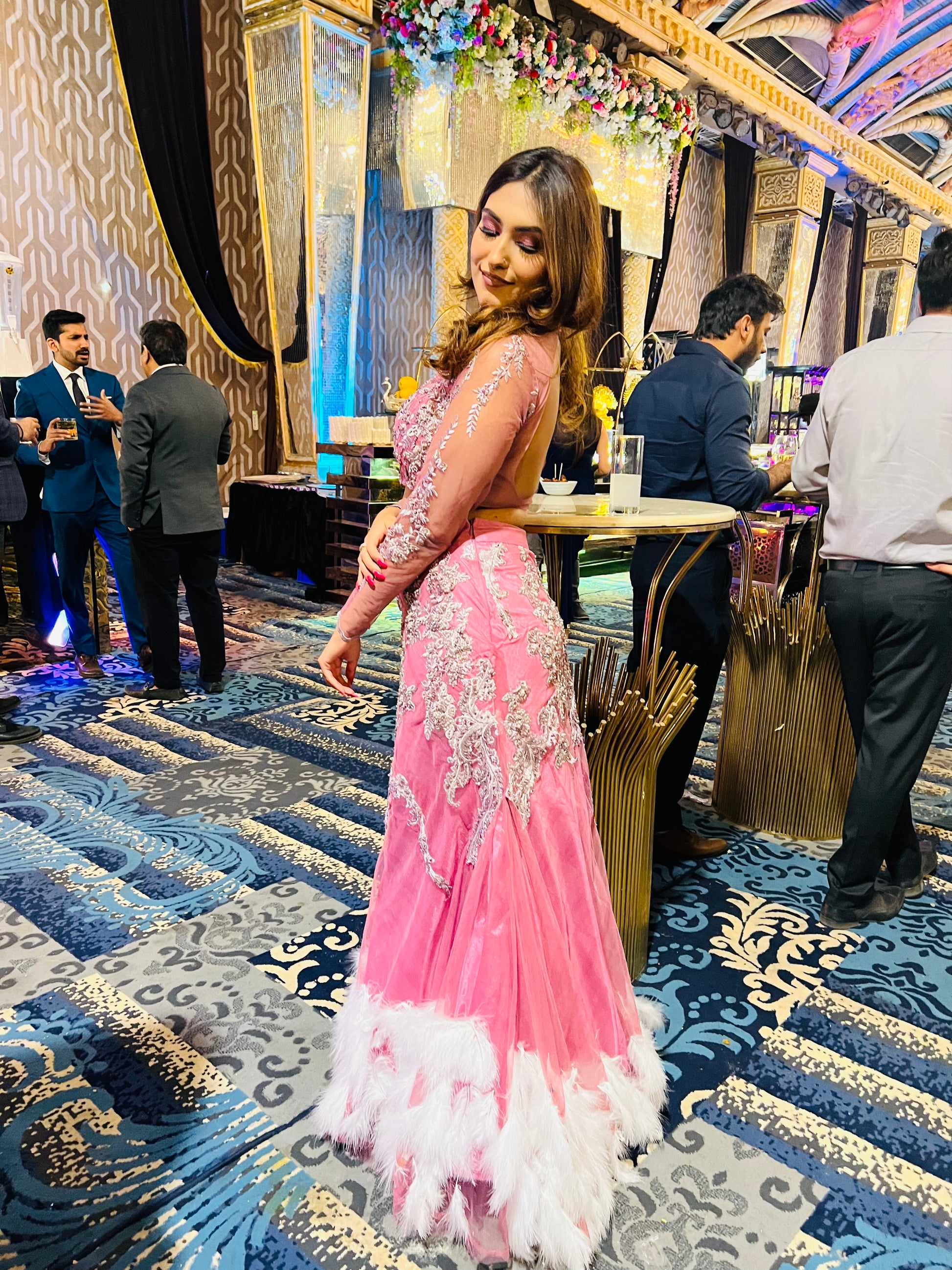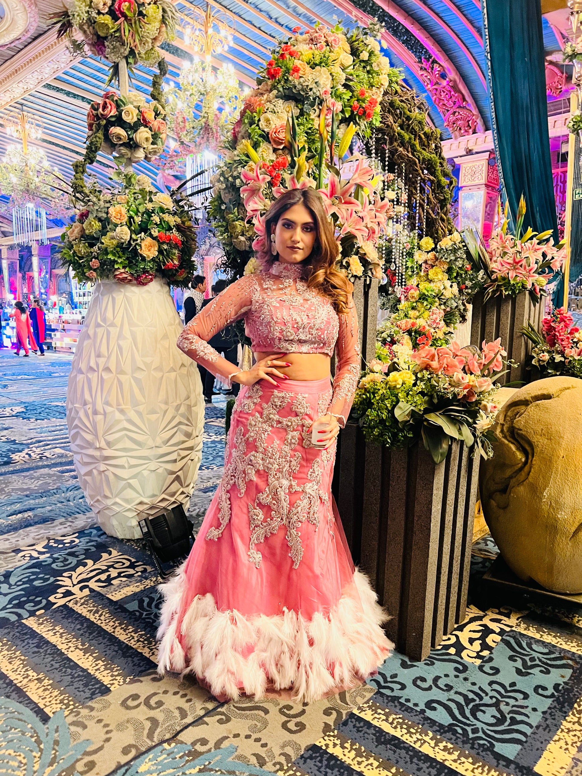 Turn heads with Nazaqatt's signature fishcut skirt and full-sleeve crop top ensemble. Crafted for the modern woman, this stunning set features intricate embroidery that exudes luxury and craftsmanship. The skirt’s fishcut design flatters your silhouette, while the plush fur trim along the hem adds a glamorous, bold touch. Paired with a chic crop top with full-length sleeves, this outfit strikes the perfect balance between elegance and contemporary style.