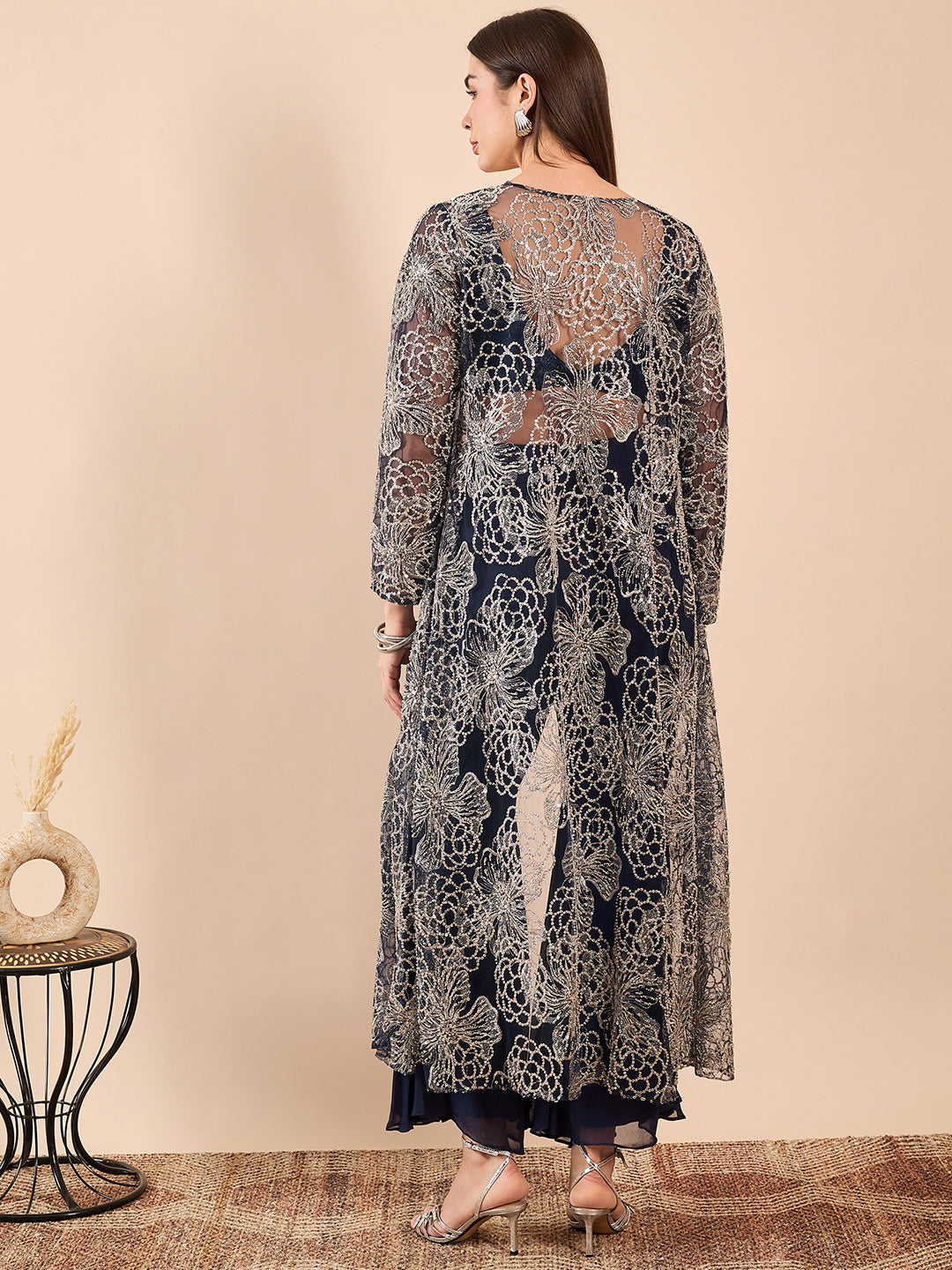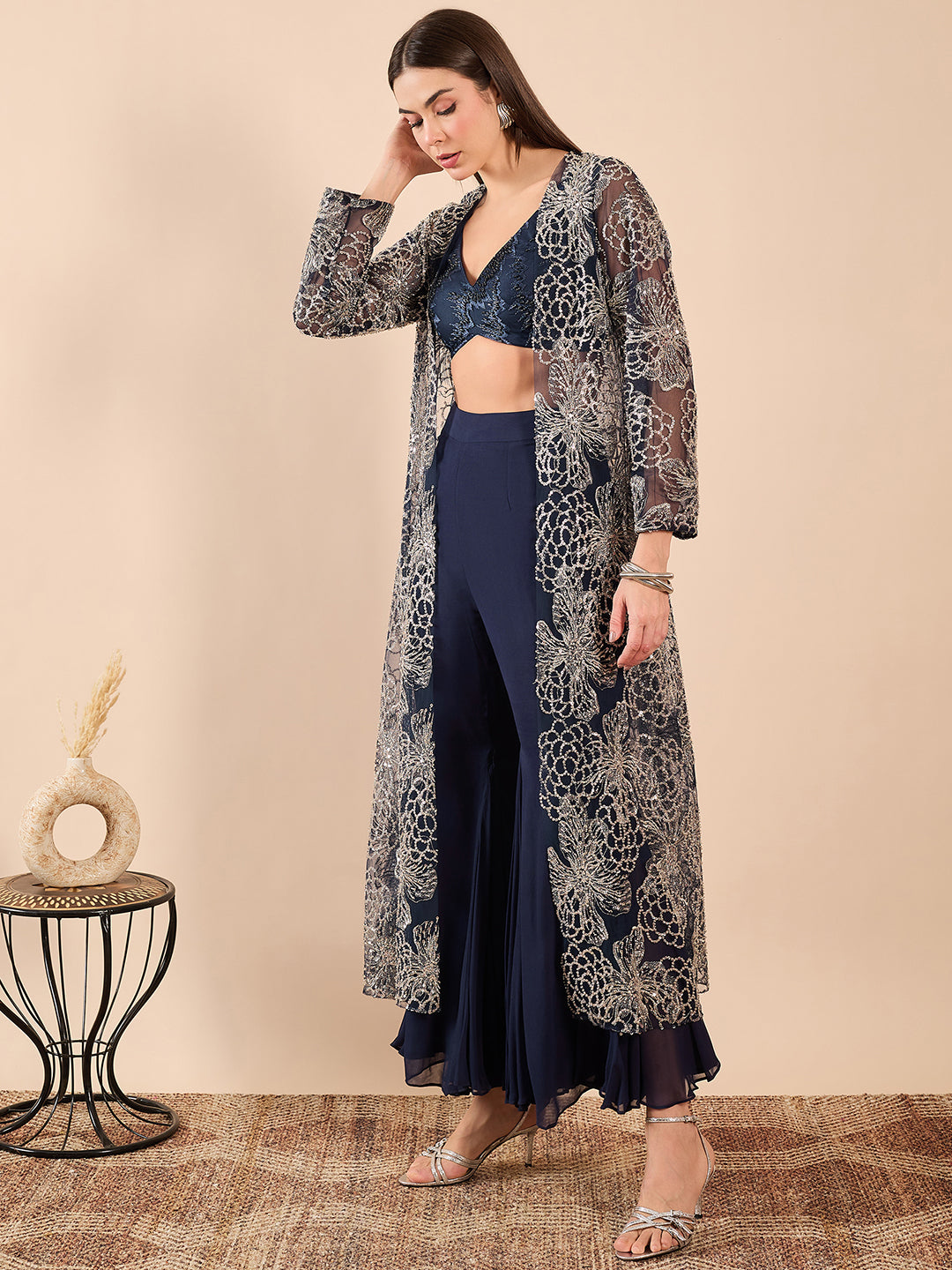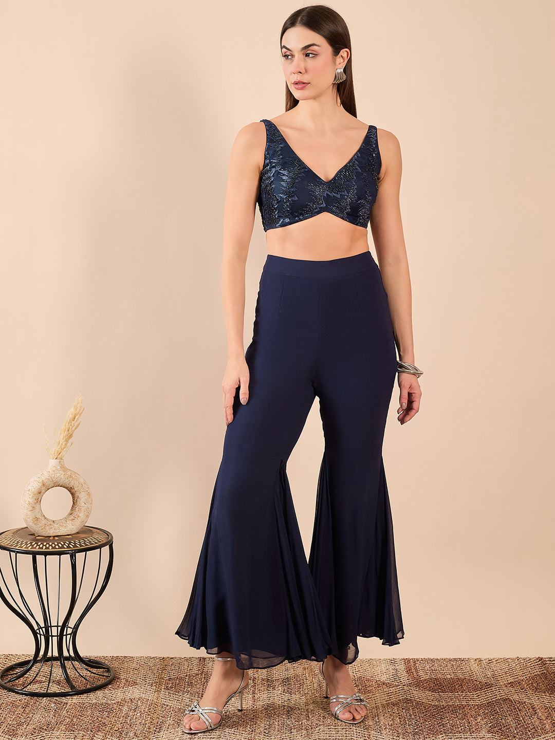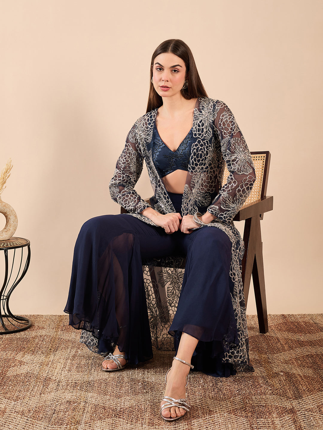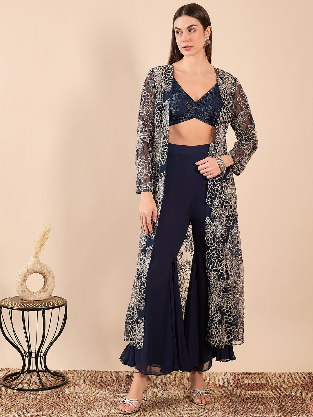 Full-Sleeve Cape with Short Bustier and Flared Pants Coord Set | Nazaqatt