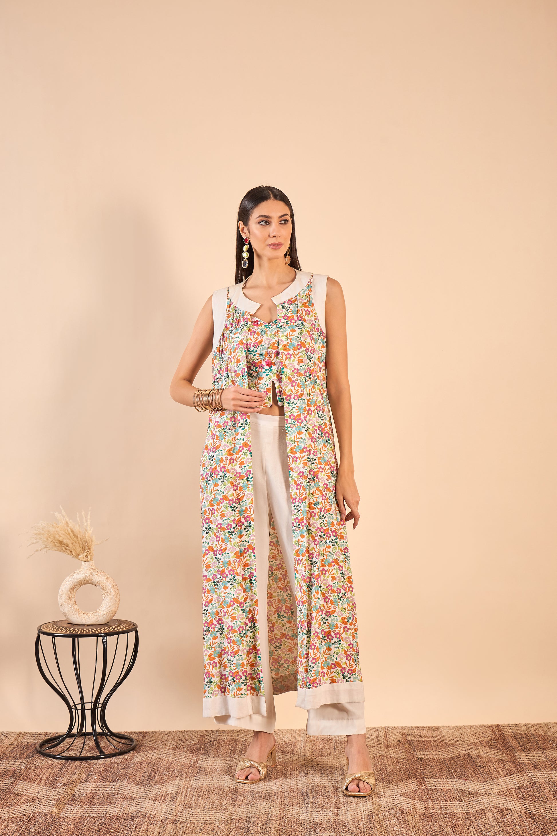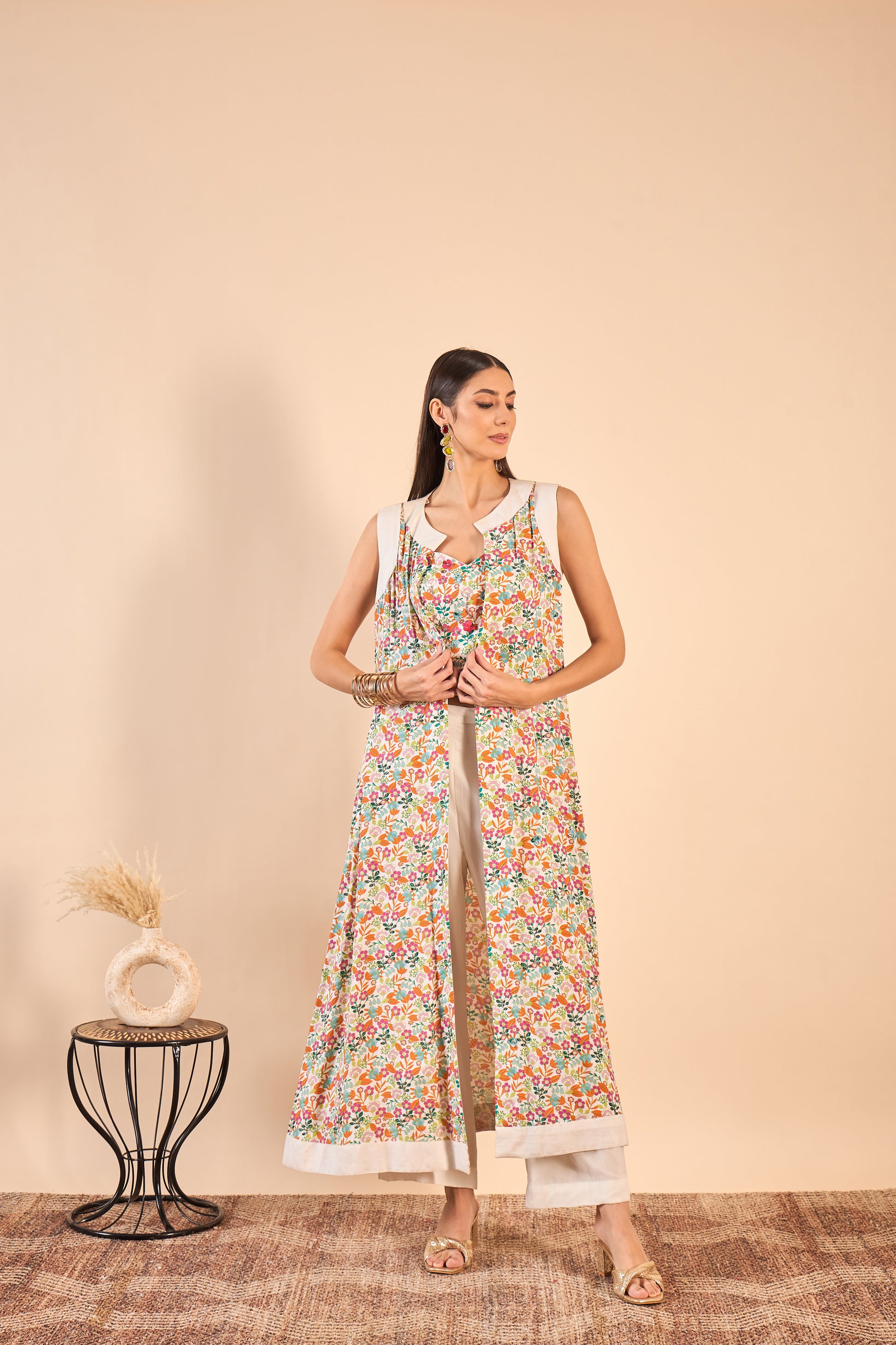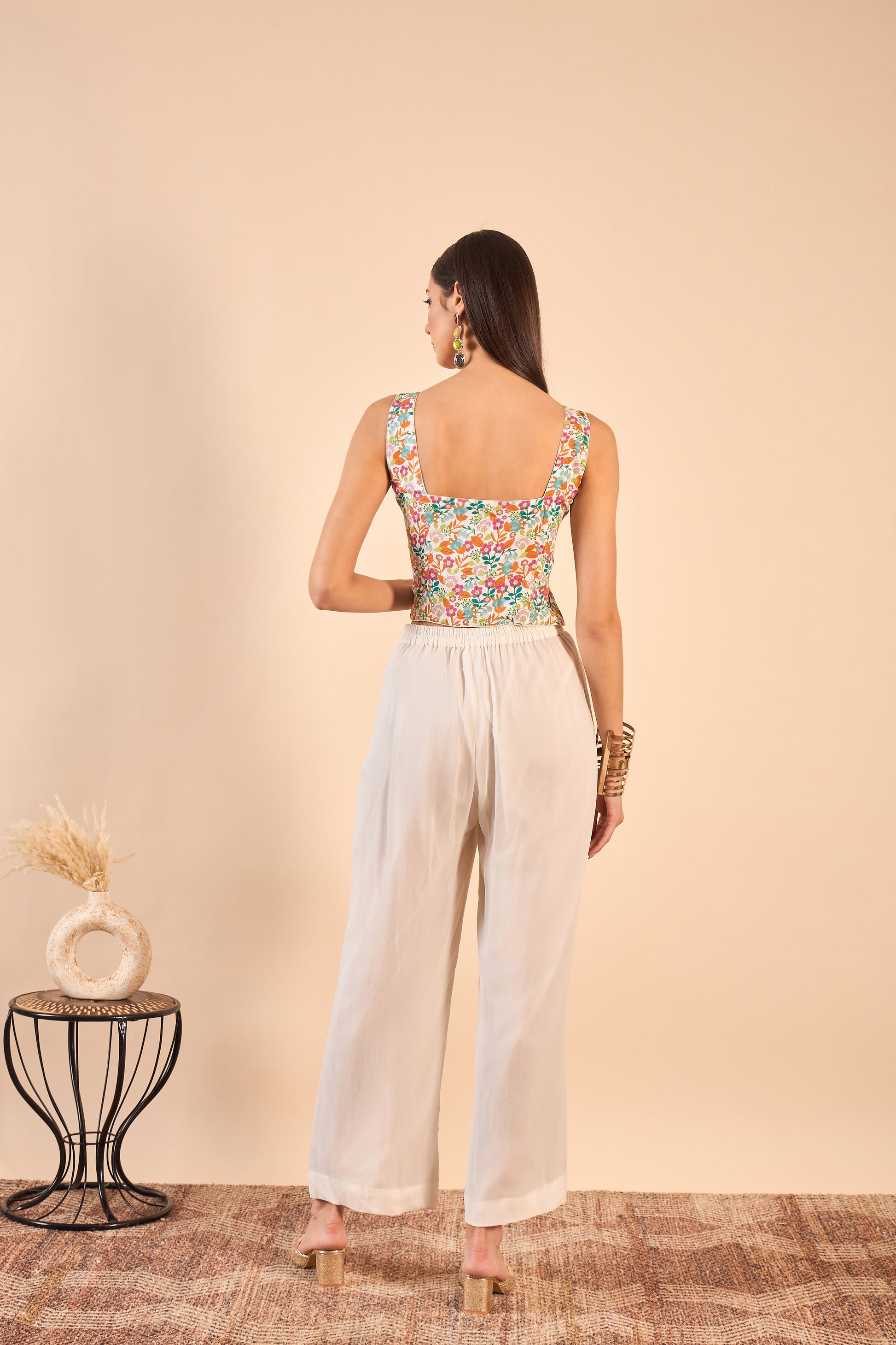 Make a bold statement with Nazaqatt's Handcrafted Cotton 3-Piece Set, a sophisticated ensemble that seamlessly blends tradition and modernity. This stunning outfit features a beautifully detailed handworked jacket and bustier, paired with sleek white straight-cut pants for a clean and elegant look. Perfect for festive gatherings, semi-formal events, or chic outings, this co-ord set exemplifies Nazaqatt’s dedication to timeless craftsmanship and contemporary style.