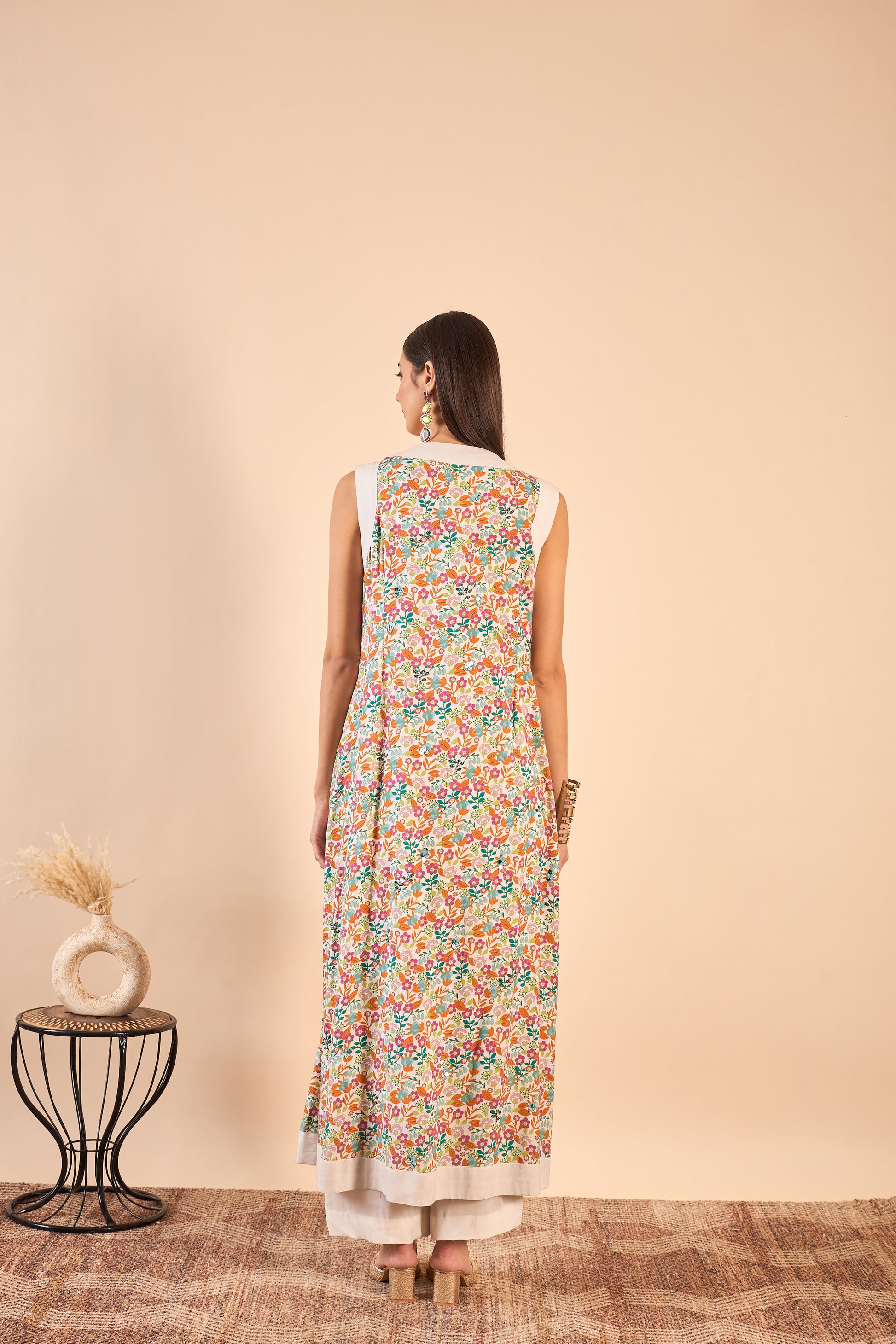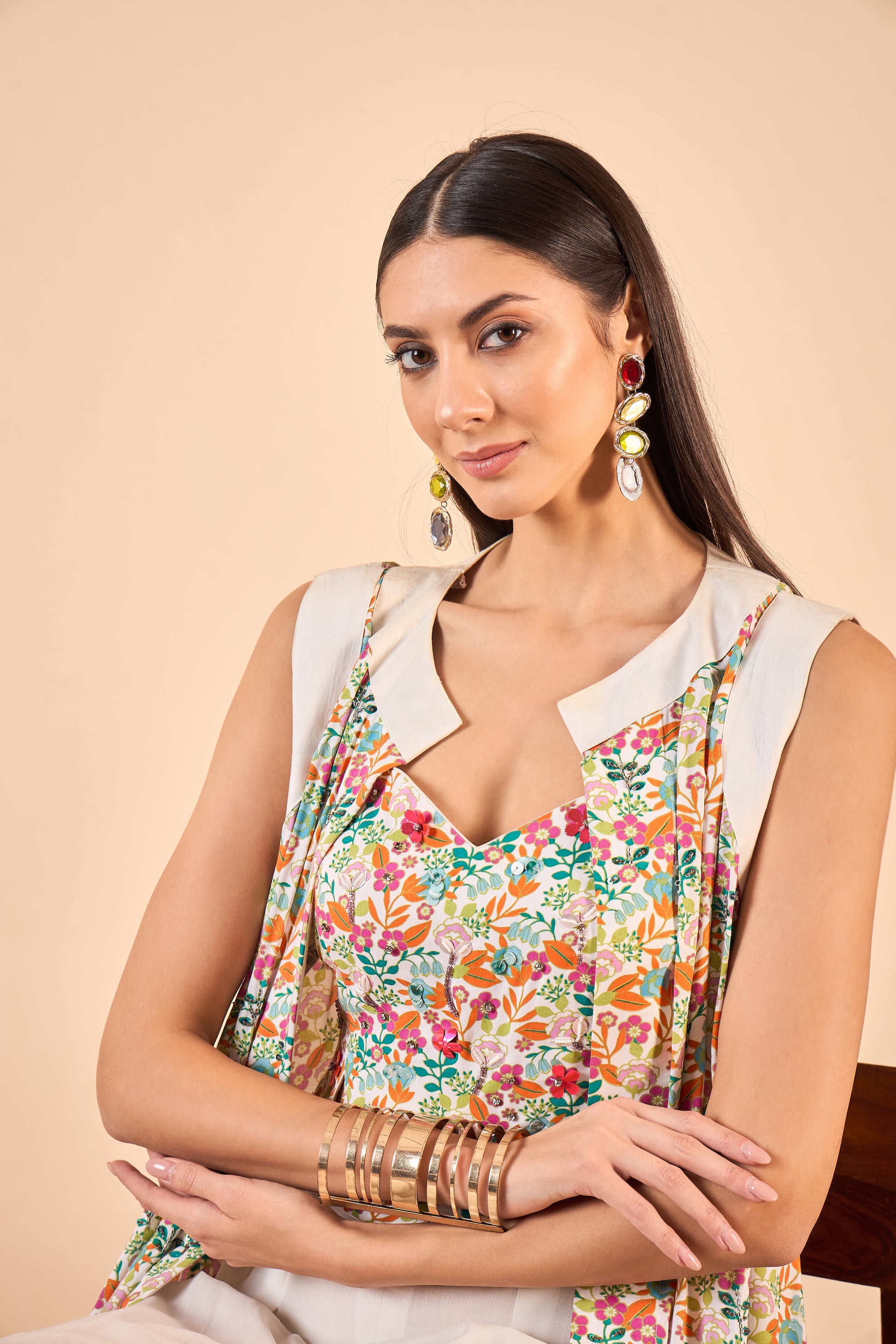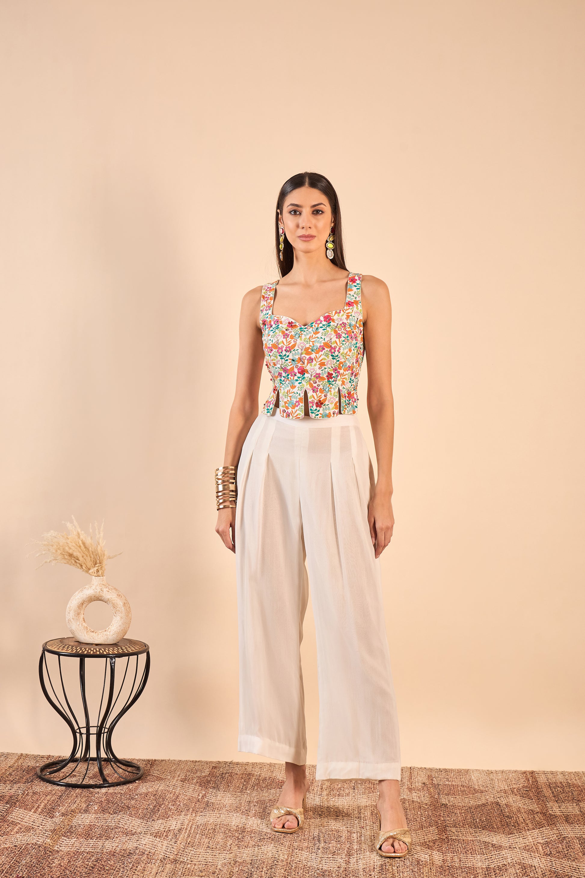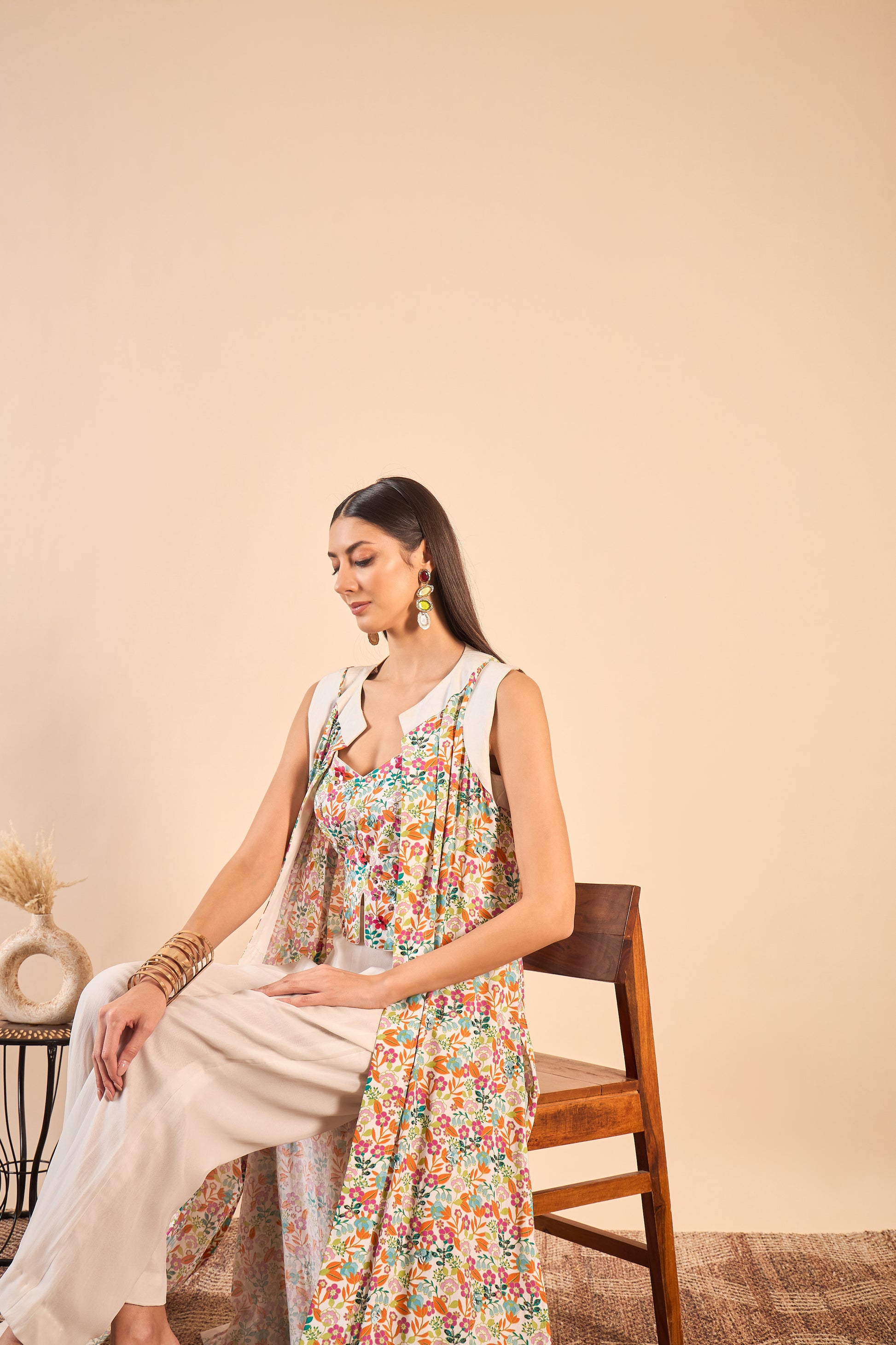 Make a bold statement with Nazaqatt's Handcrafted Cotton 3-Piece Set, a sophisticated ensemble that seamlessly blends tradition and modernity. This stunning outfit features a beautifully detailed handworked jacket and bustier, paired with sleek white straight-cut pants for a clean and elegant look. Perfect for festive gatherings, semi-formal events, or chic outings, this co-ord set exemplifies Nazaqatt’s dedication to timeless craftsmanship and contemporary style.
