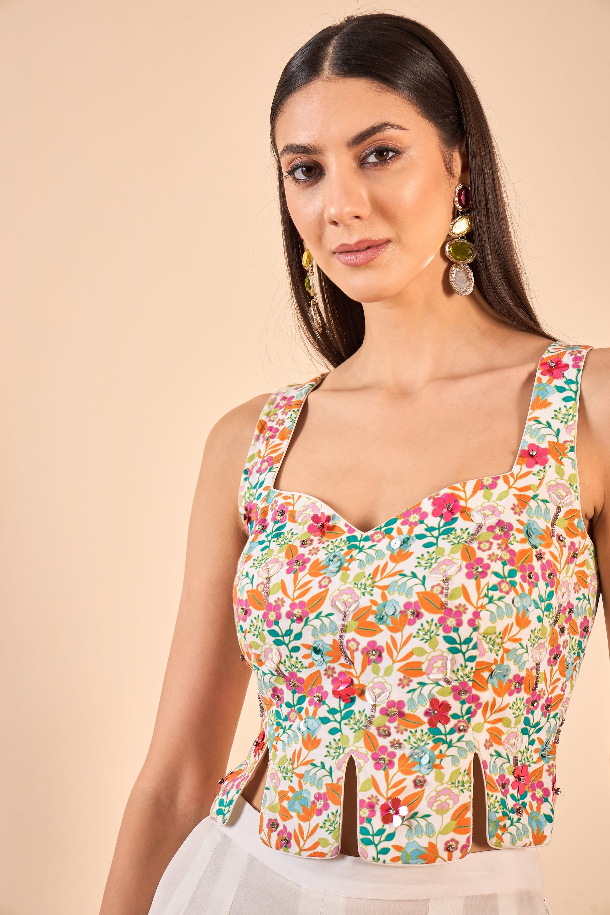 - Embellished Bustier: A chic and fitted top that complements the jacket perfectly.