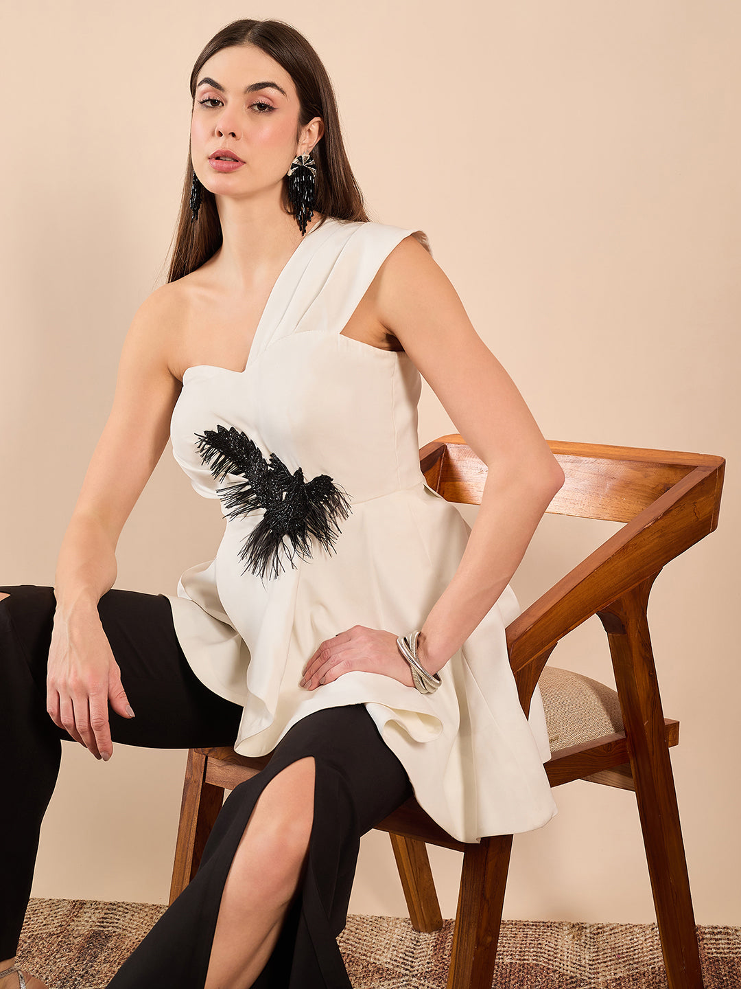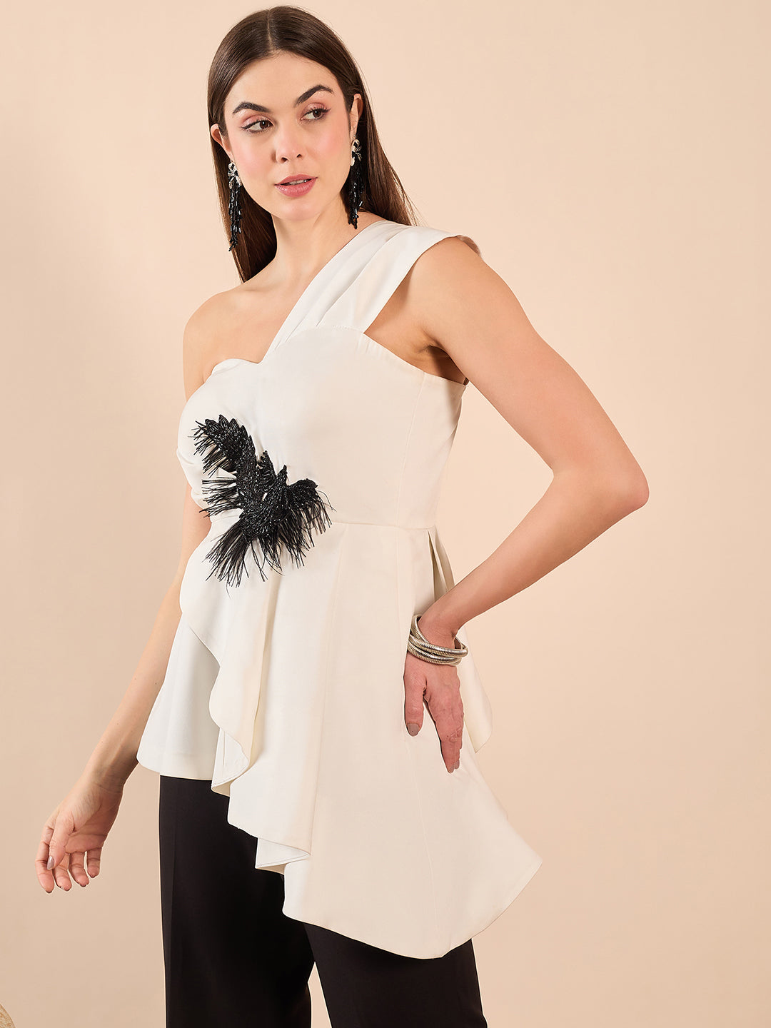 - High-low peplum top with an asymmetrical hemline for a contemporary look