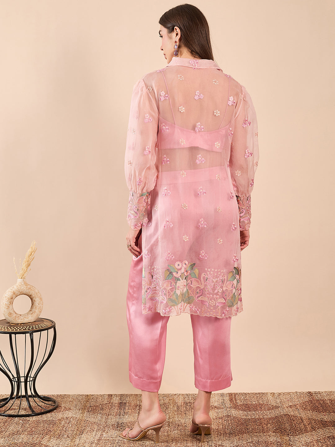 Elegant Pant and Deep Neck Kurta Set with Bustier | Nazaqatt