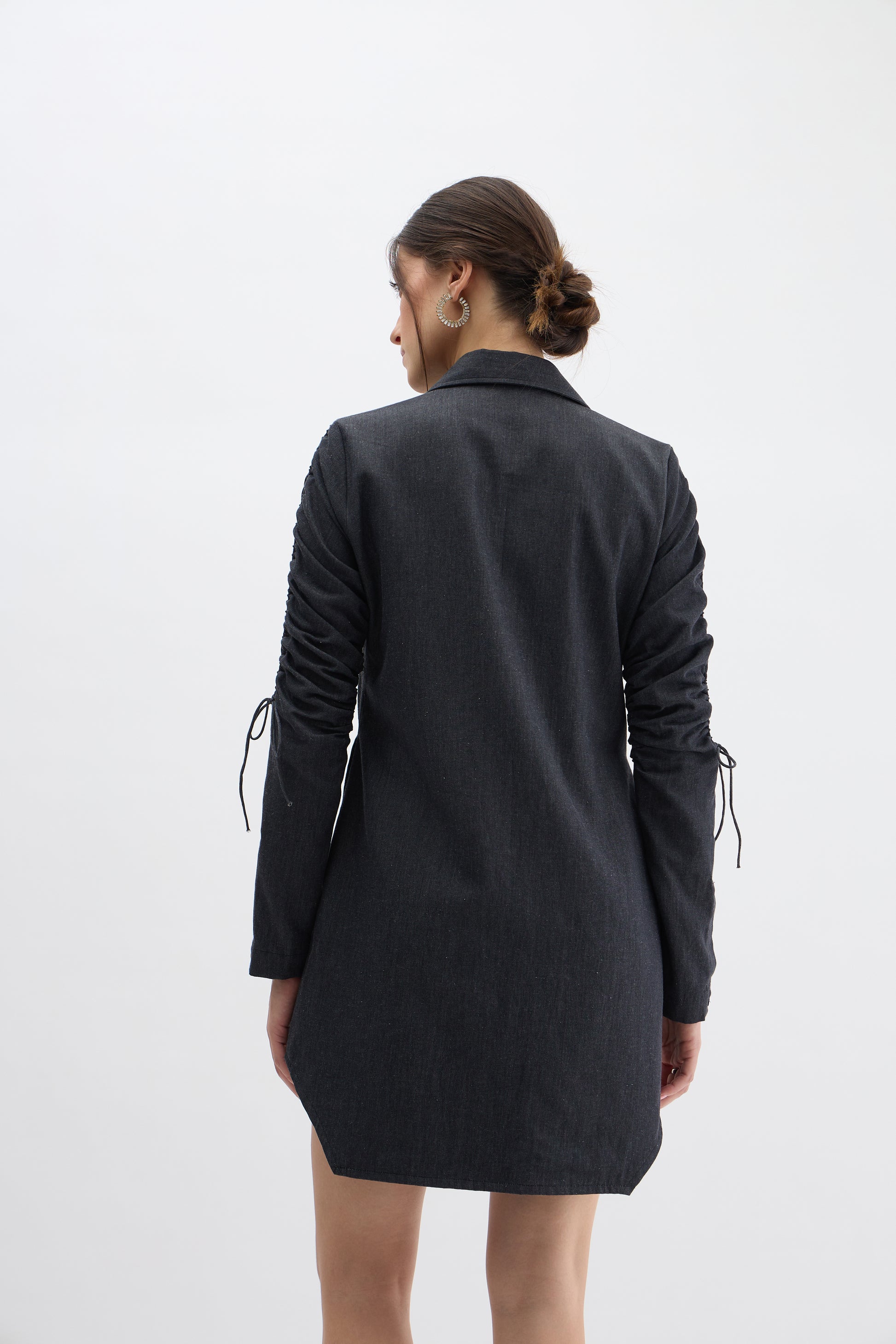 - Ruched Sleeves with Drawstrings: Sculptural volume with adjustable detailing.