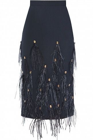 This navy-blue short skirt with feather detailing is a fashion-forward piece that offers a perfect blend of boldness and sophistication, designed for those who love to make a lasting impression.