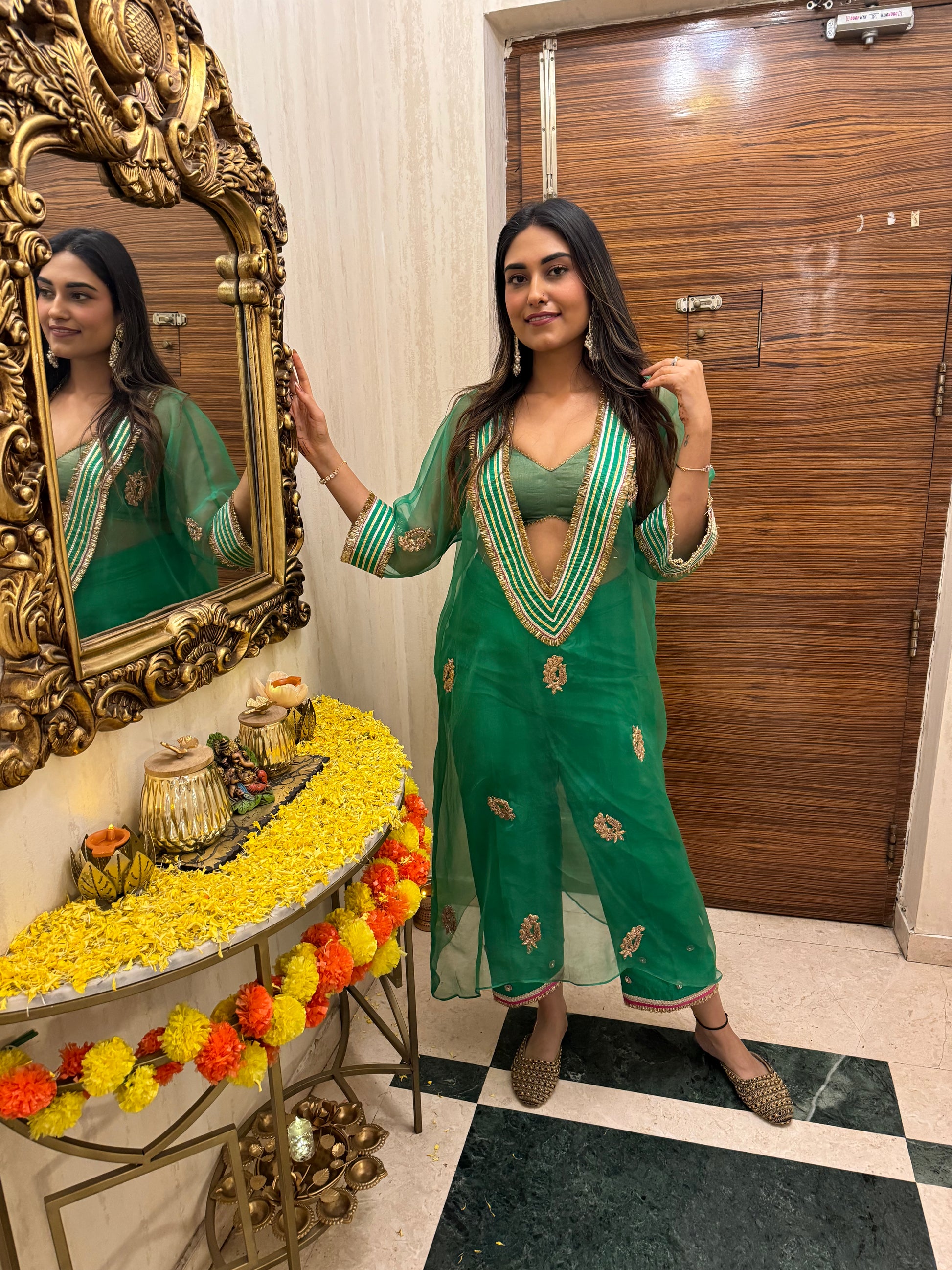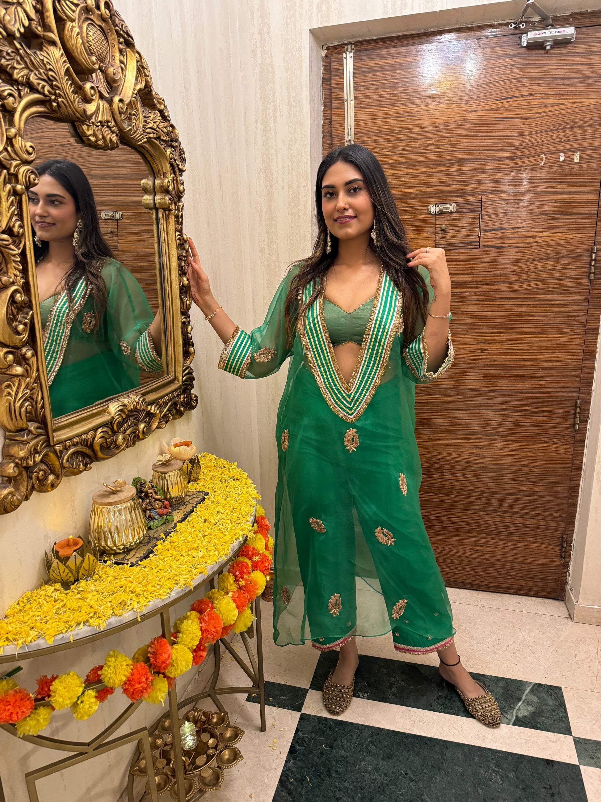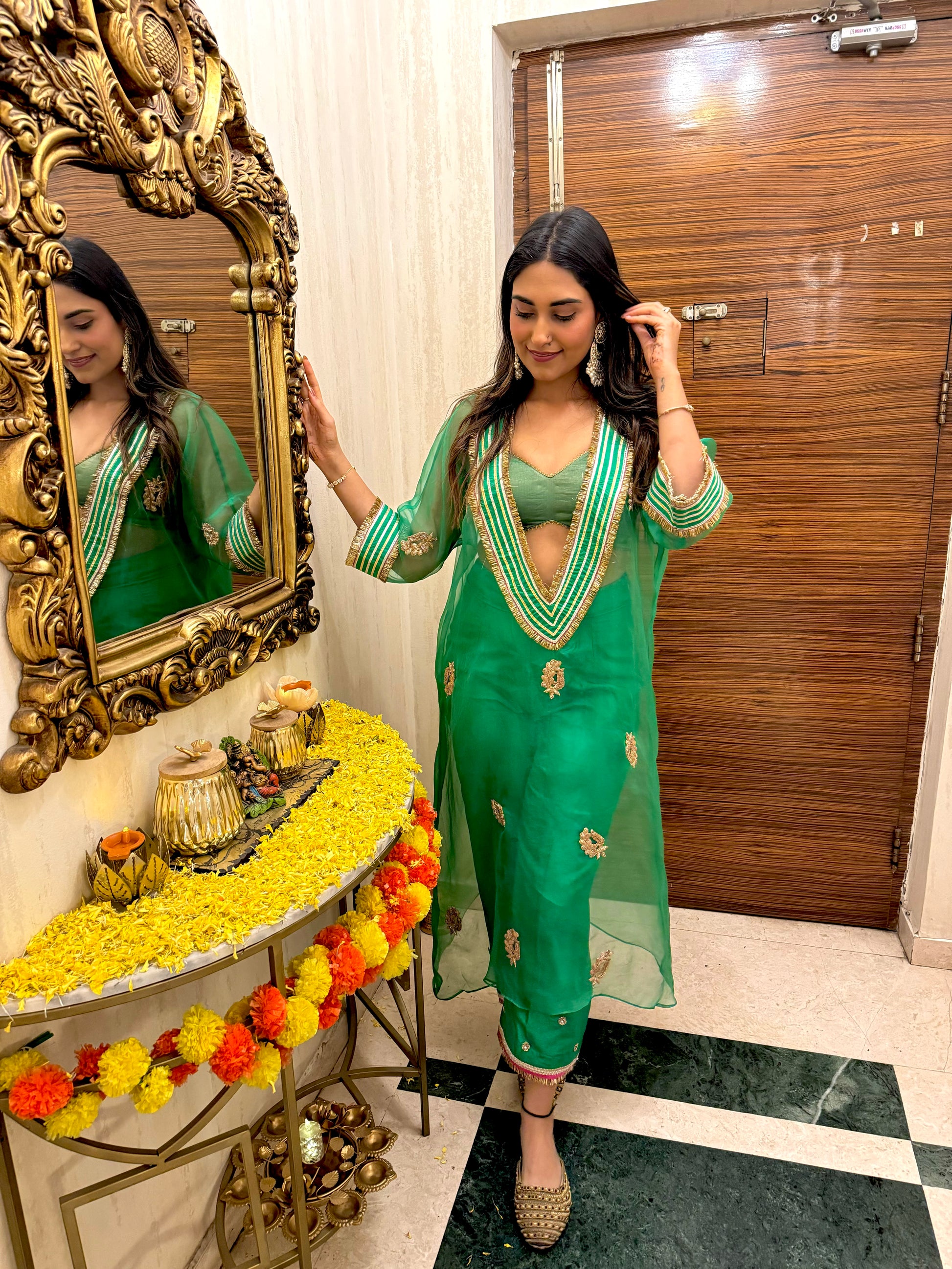 Elegant Pant and Deep Neck Kurta Set with Bustier | Nazaqatt