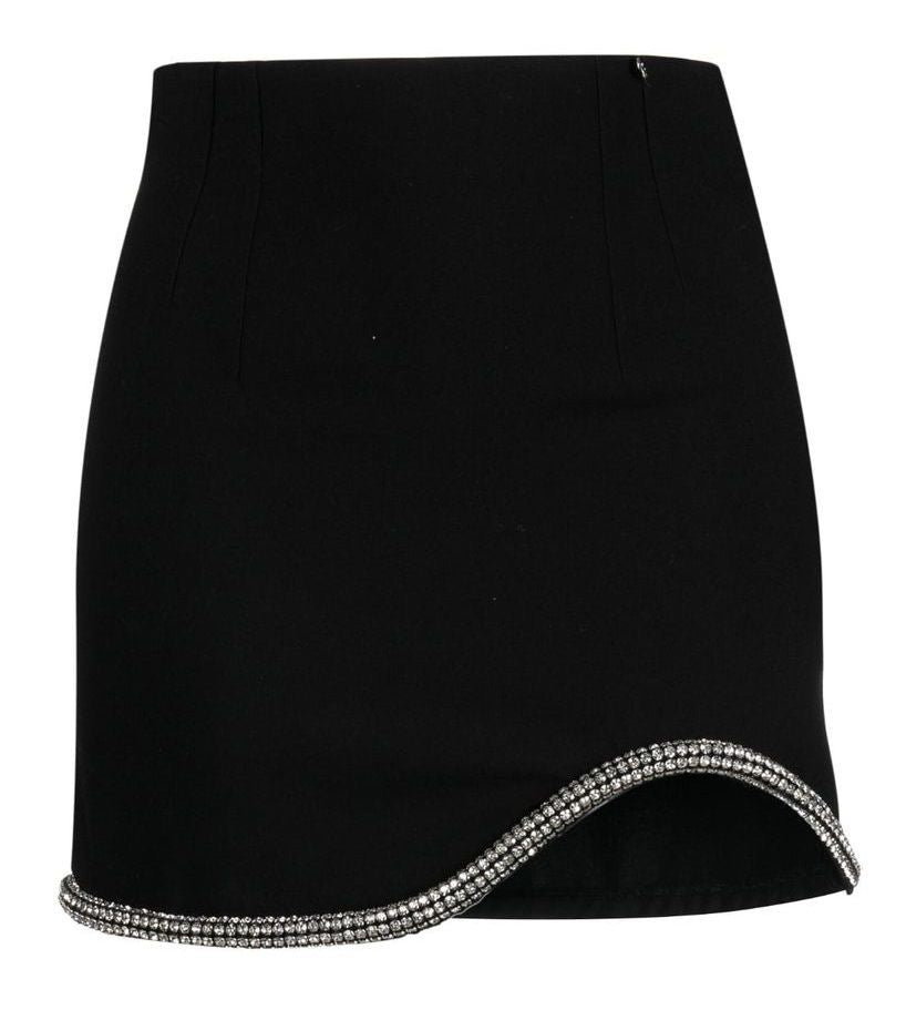 Plain Short Black Skirt with Stonework Detailing