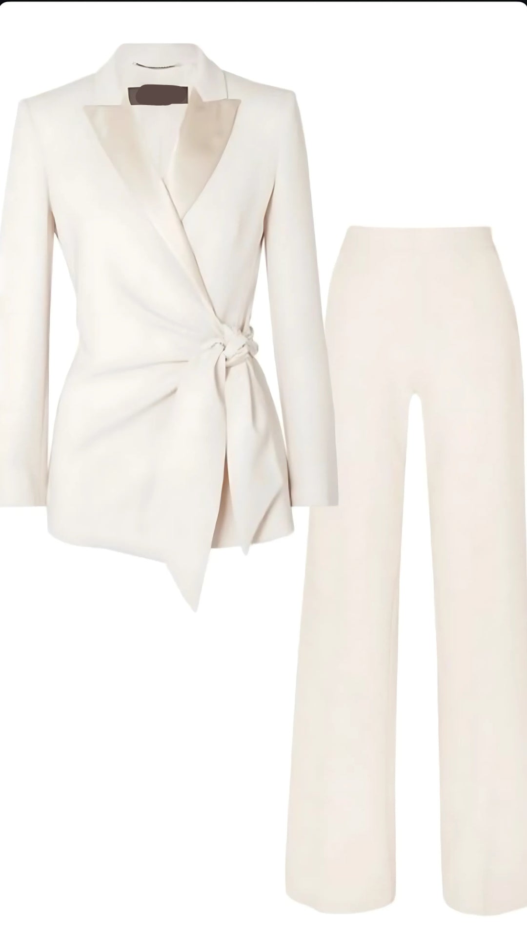 This plain white blazer co-ord set with a belt and straight pants is the ultimate in versatile, high-fashion sophistication, offering a look that is both timeless and trendsetting.