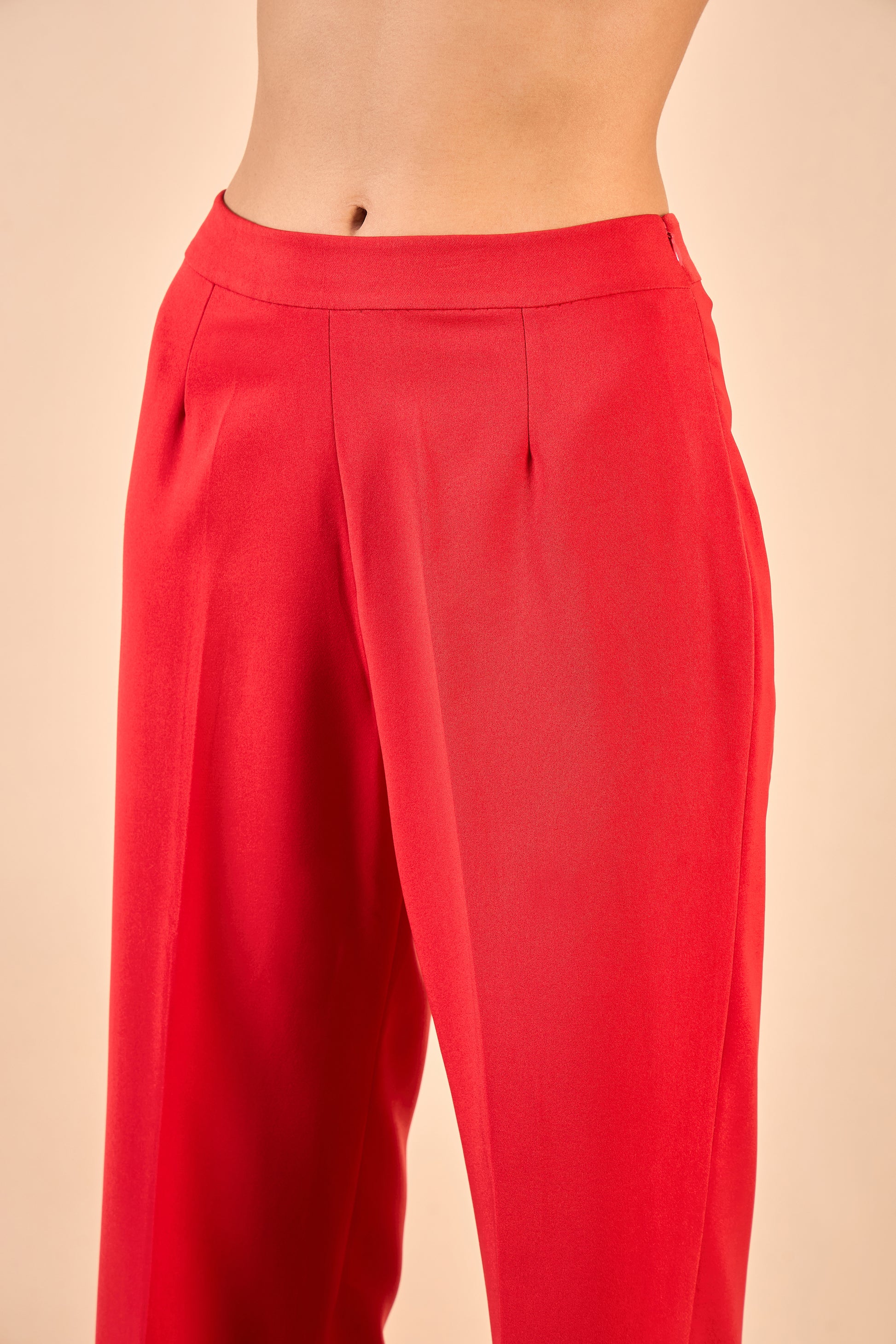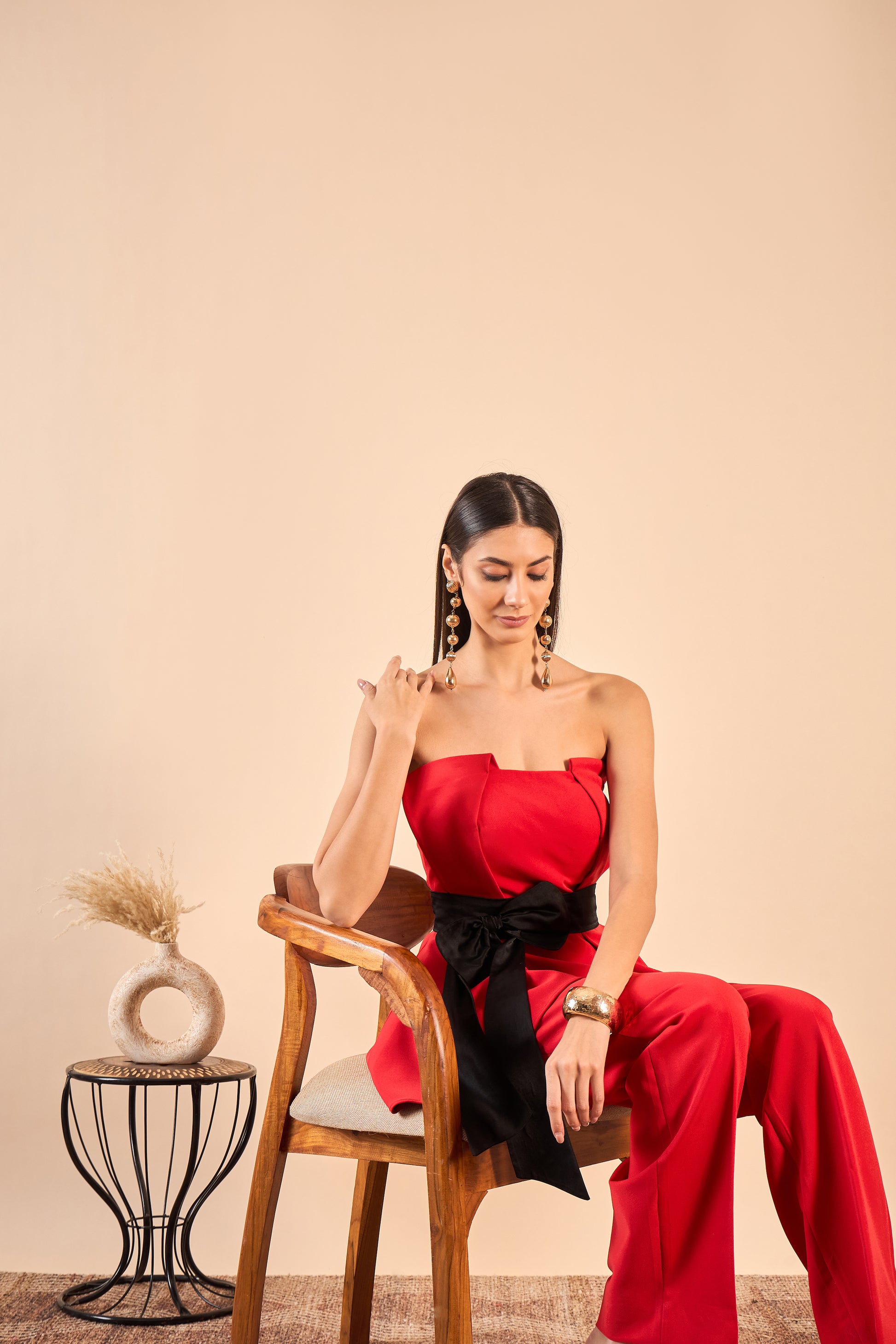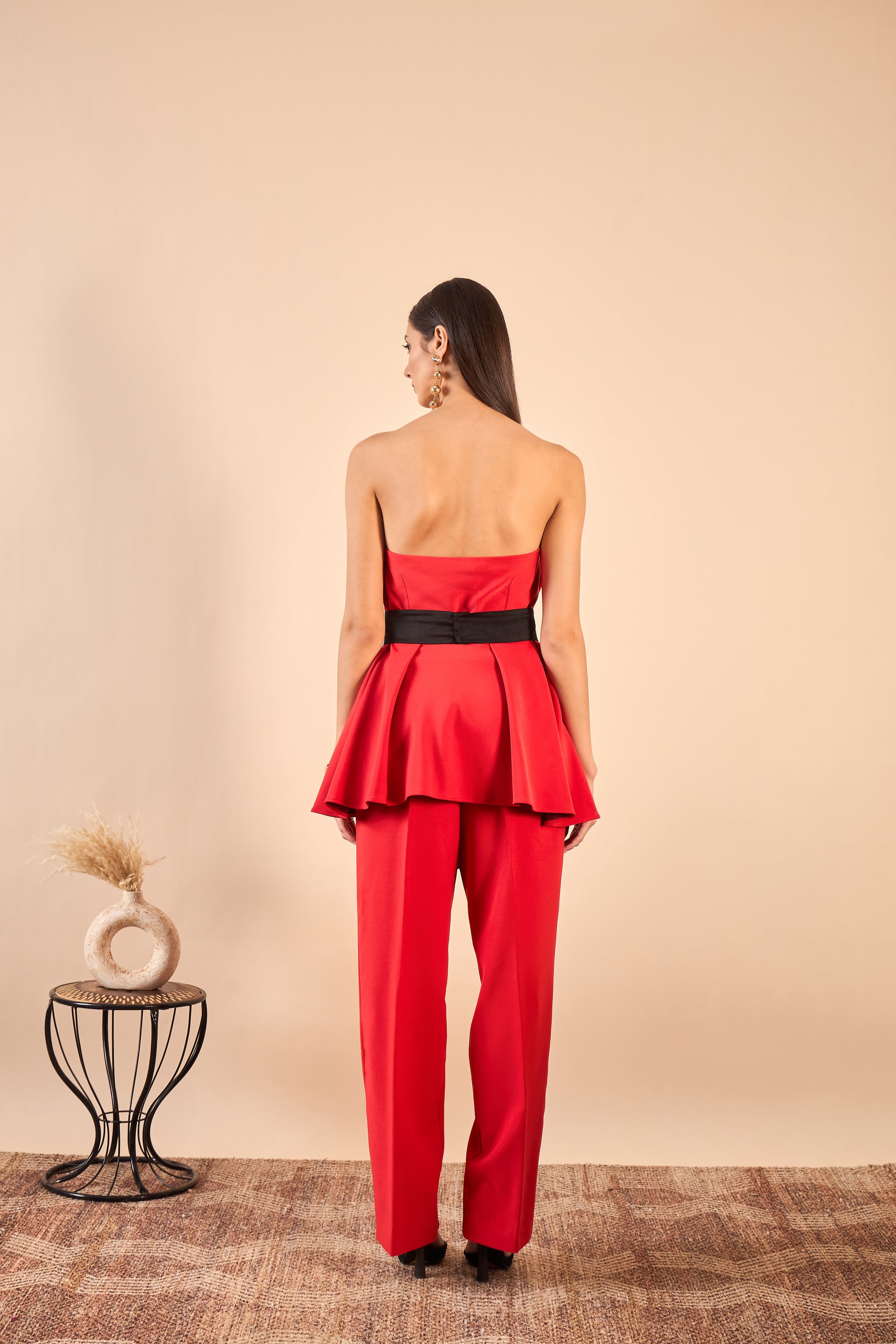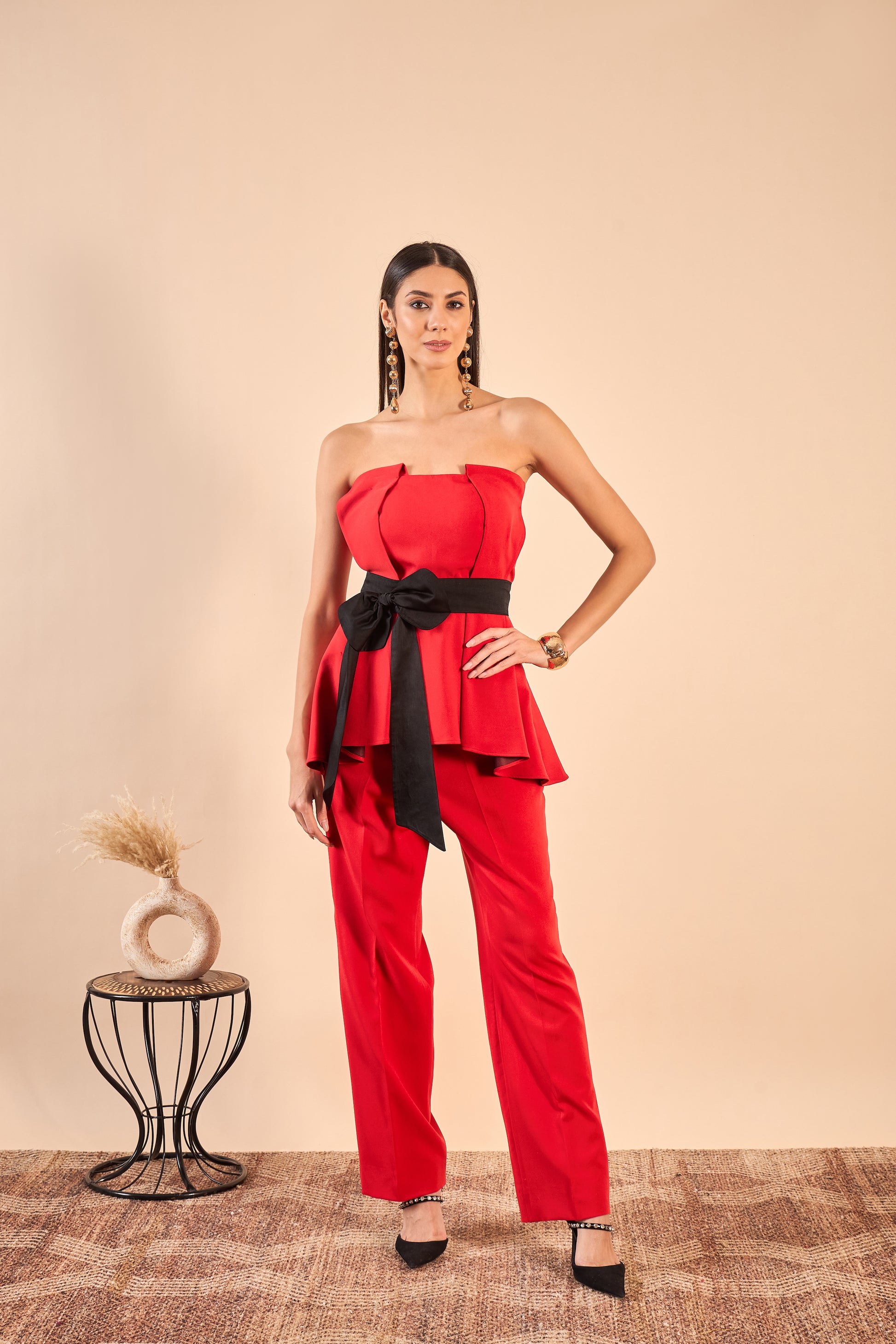Make a bold statement with Nazaqatt's Red Co-ord Set with Detachable Black Belt, an ensemble designed for the modern trendsetter. This sophisticated outfit features a sleek halter neck pleated top with tailored straight pants, exuding elegance and minimalistic charm. The detachable black belt adds a touch of contrast and versatility, allowing you to style the look effortlessly for any occasion. Perfect for evening events, parties, or chic outings, this coord set epitomizes Nazaqatt's dedication to contemporary fashion and impeccable craftsmanship.