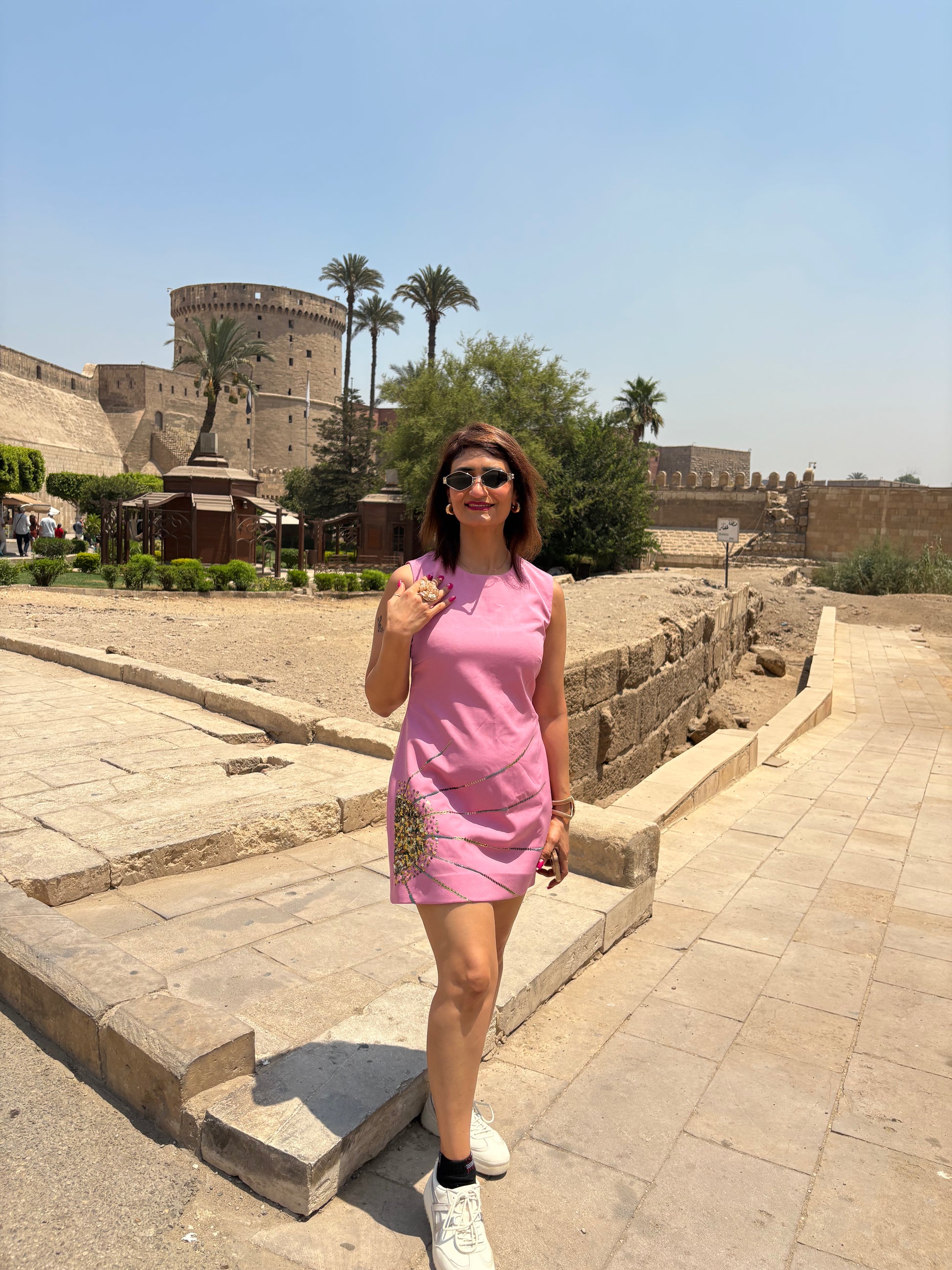 Channel timeless elegance with a touch of cosmic glam in the Rose Radiance Embellished Mini Dress. Crafted in a soft rose-pink hue, this sleeveless mini dress features a clean, structured silhouette that flatters the figure with quiet confidence. The standout detail? A radiant explosion of multicolored sequins and beadwork placed asymmetrically at the hem — like a burst of stardust frozen in time. The high neckline and minimalist cut let the dramatic embellishment shine, making it a perfect choice for cocktail parties, date nights, or upscale summer soirées. Just add gold jewelry and strappy heels for an effortlessly striking look.