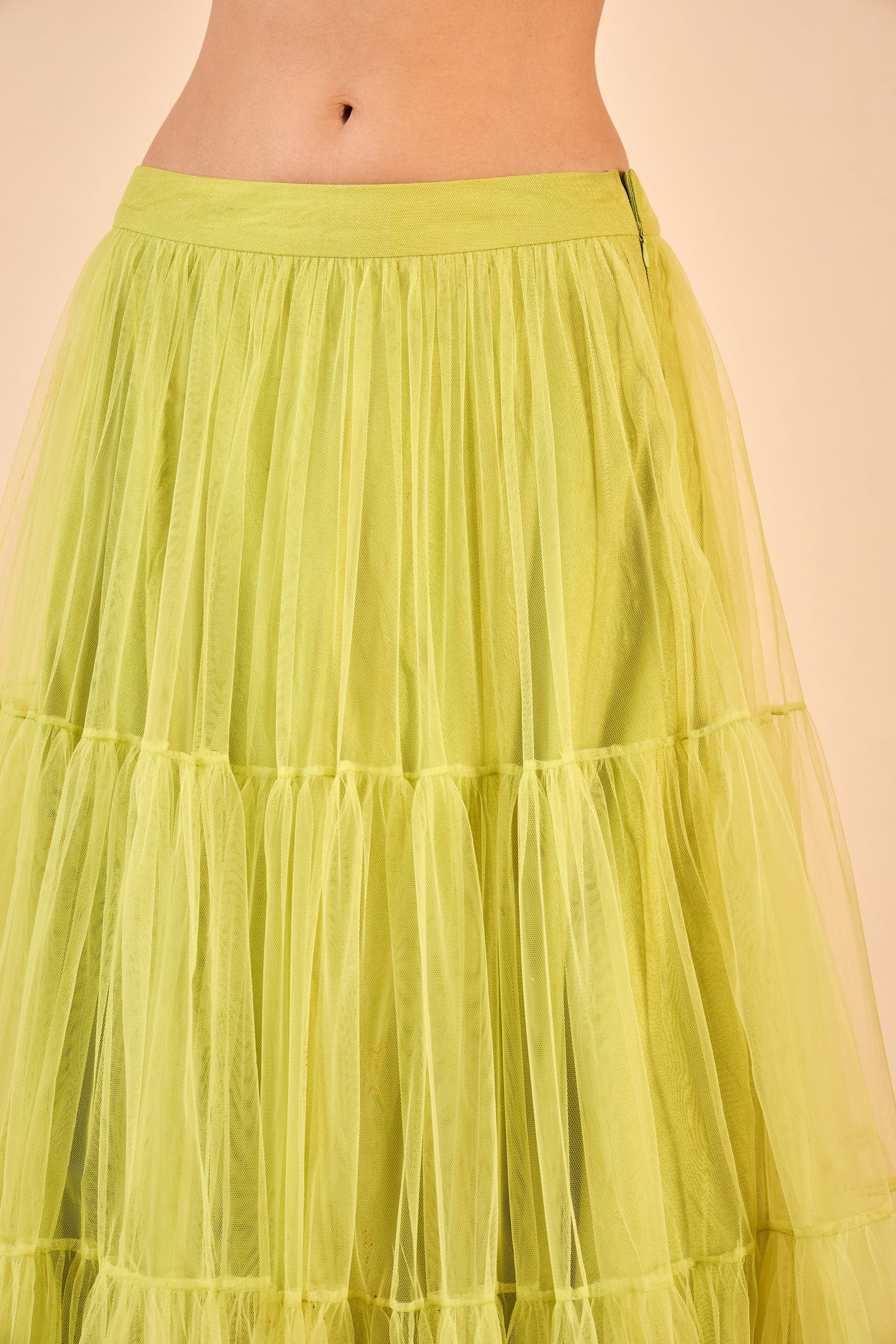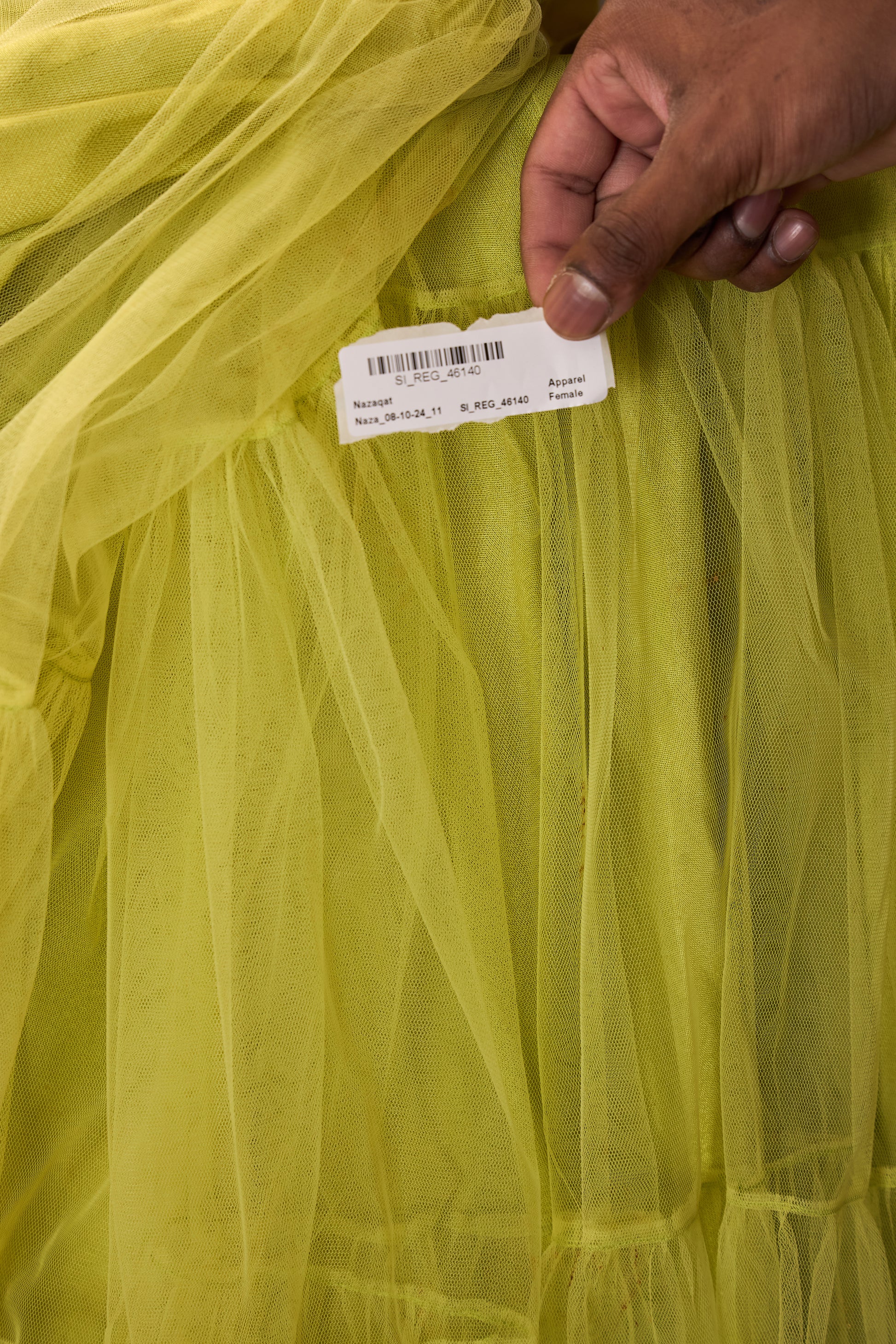 Make a striking statement with Nazaqatt's Ruffled Net Lehenga with Embroidery, a stunning creation in a refreshing shade of green. This enchanting lehenga features cascading ruffles that add volume and elegance, while intricate embroidery enhances its charm and sophistication. Perfect for weddings, festive celebrations, or grand occasions, this lehenga is a true testament to Nazaqatt's dedication to timeless design and meticulous craftsmanship.